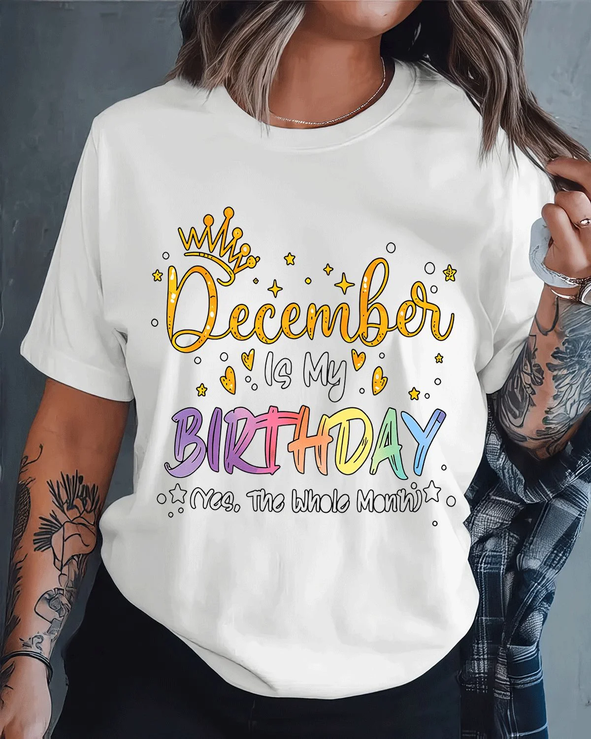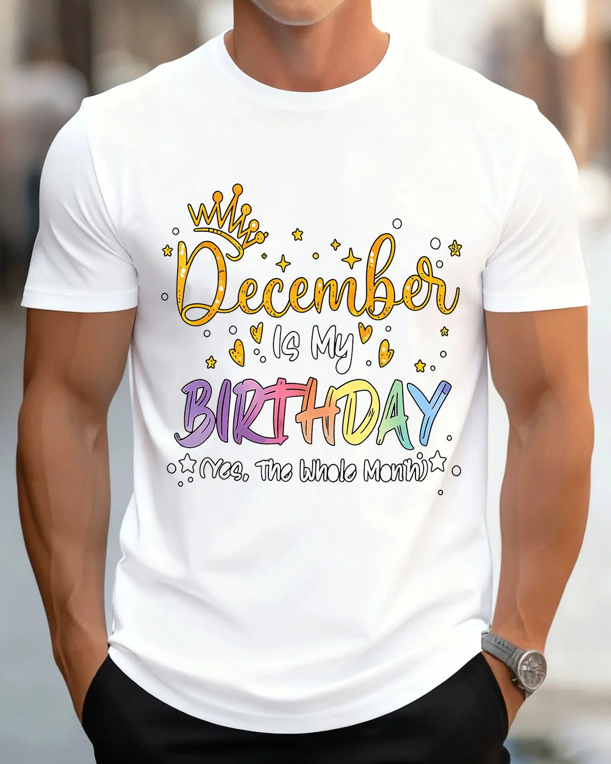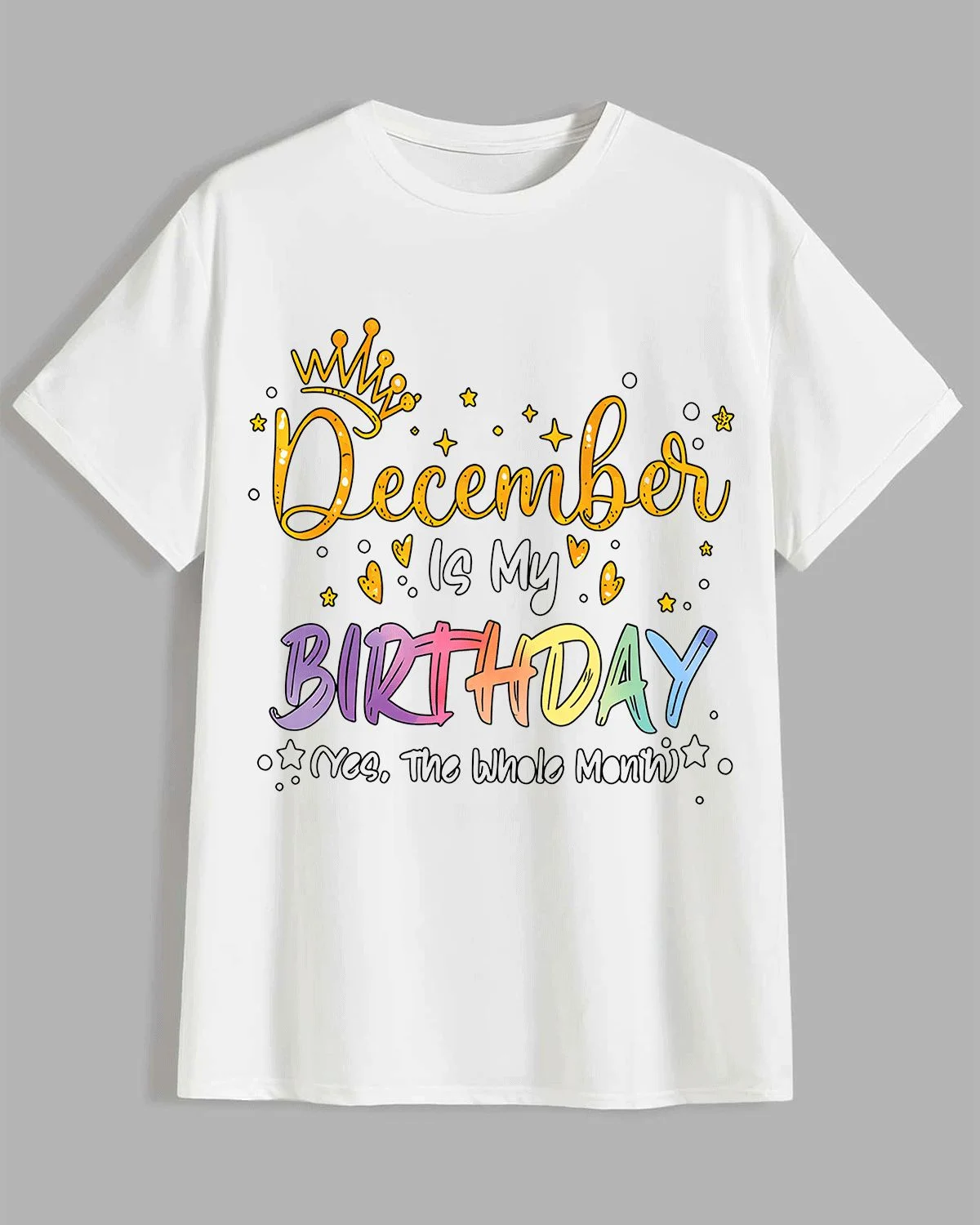December Birthday Month Celebration Summer Cotton Graphic T Shirt - Casual Funny, Short Sleeve, Soft Fabric, Comfortable Fit