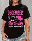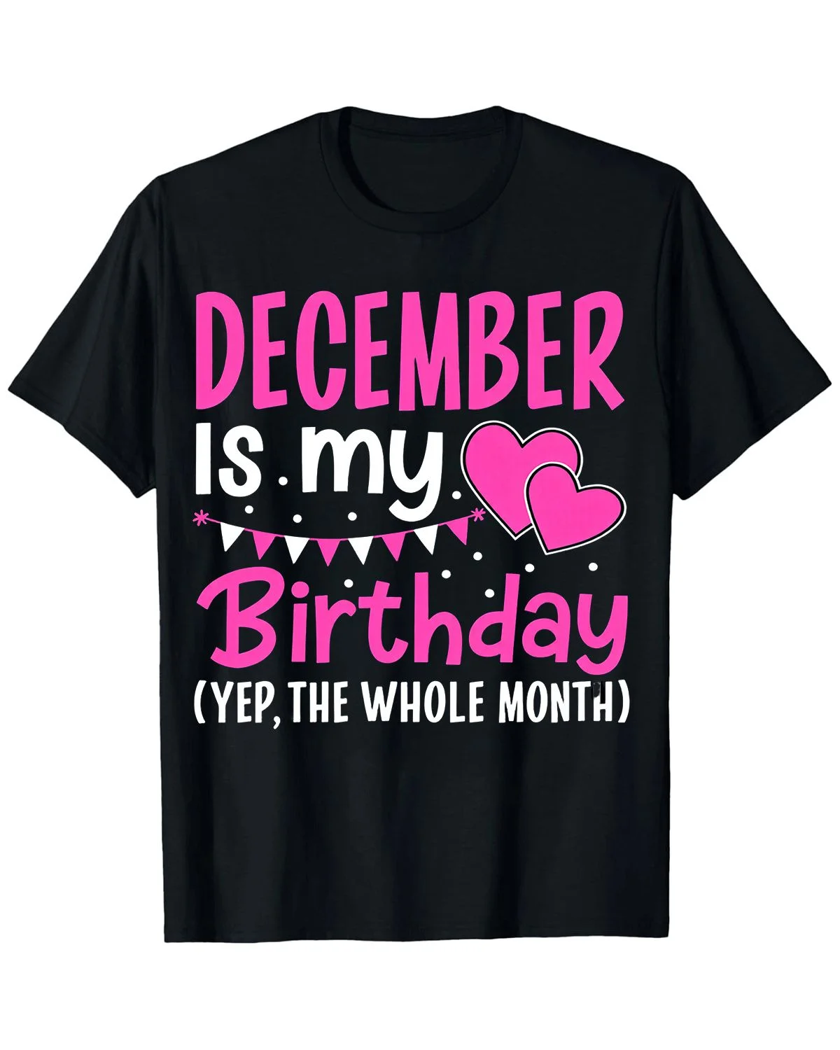 December Is My Birthday Mom Summer Cotton Graphic T Shirt - Casual Funny, Short Sleeve, Soft Fabric, Comfortable Fit