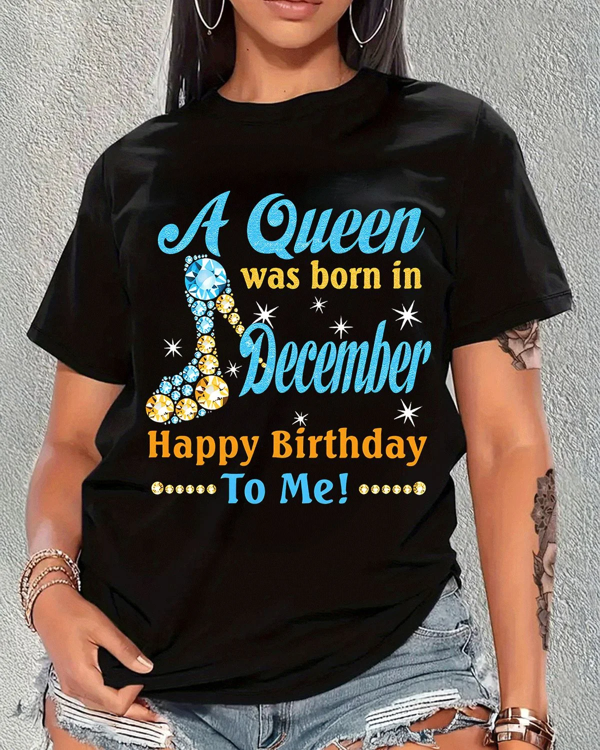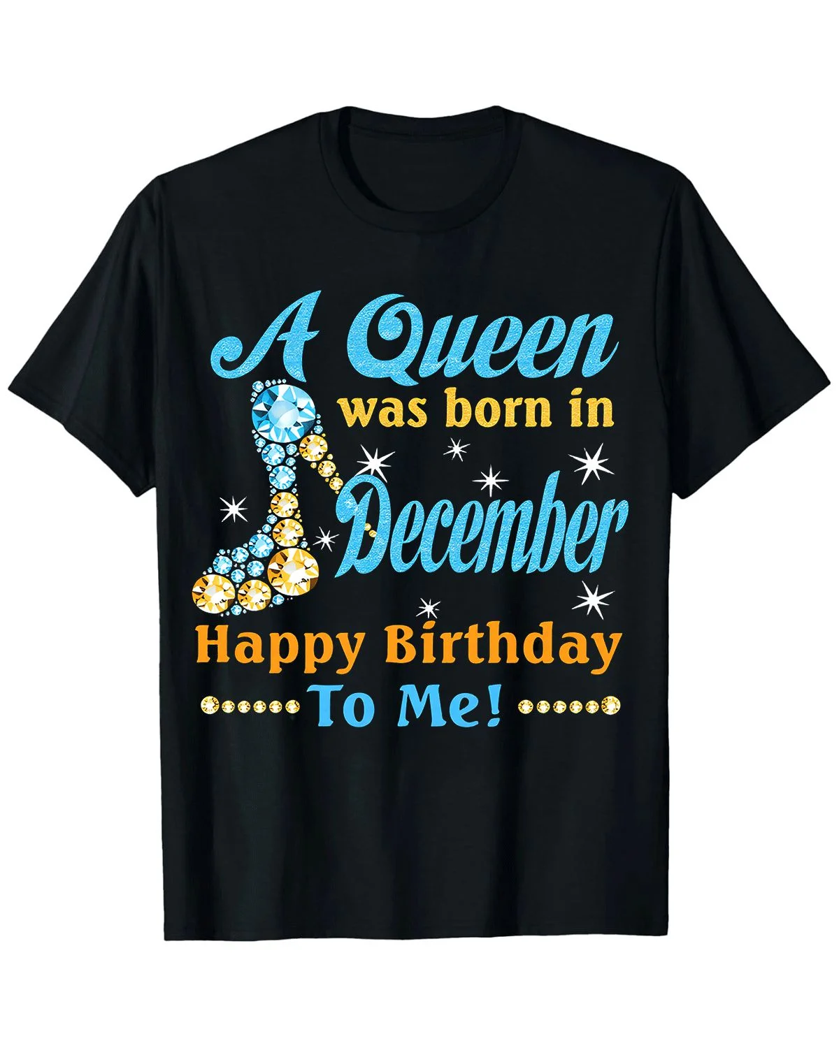 December Queen Mom Birthday Summer Cotton Graphic T Shirt - Casual Chic, Short Sleeve, Soft Fabric, Comfortable Fit