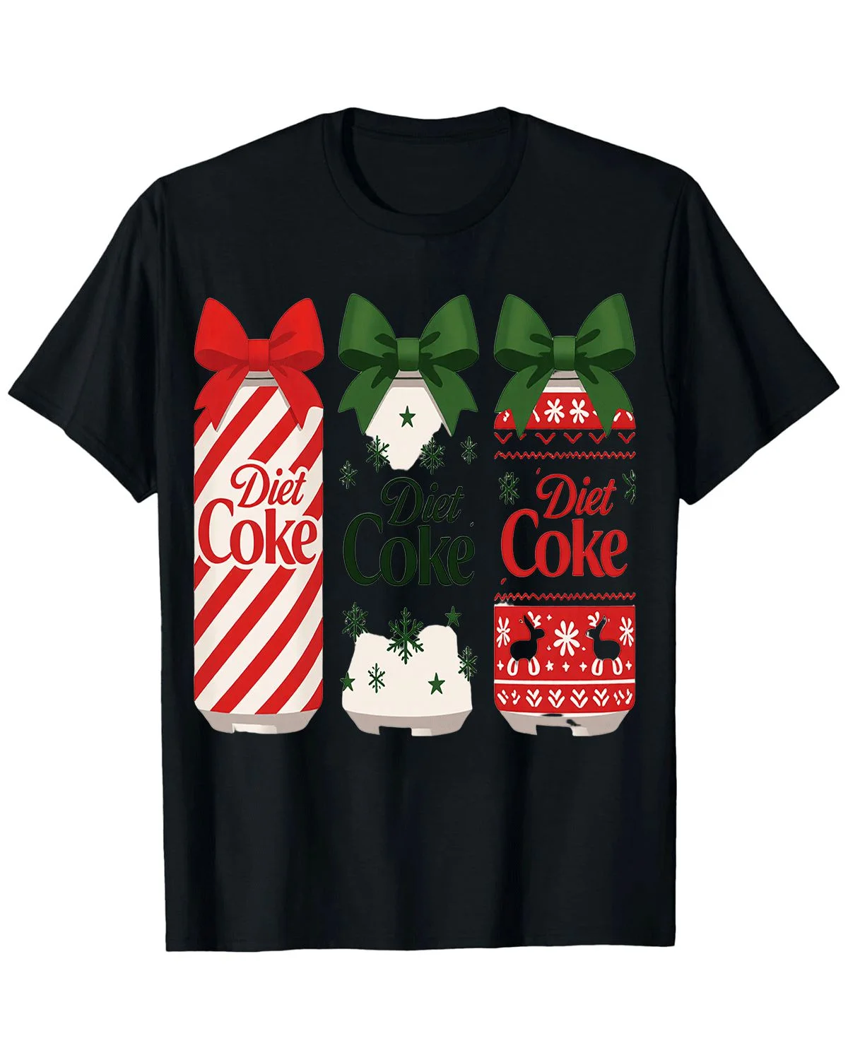 Diet Coke Christmas Holiday Cans Summer Cotton Graphic T Shirt - Casual Vintage, Short Sleeve, Soft Fabric, Comfortable Fit