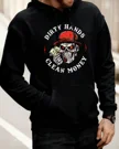 Dirty Hands Clean Money Skull Cozy Cotton Graphic Hoodie-Street Vintage,Long Sleeves,Soft Fabric,Comfortable Fit