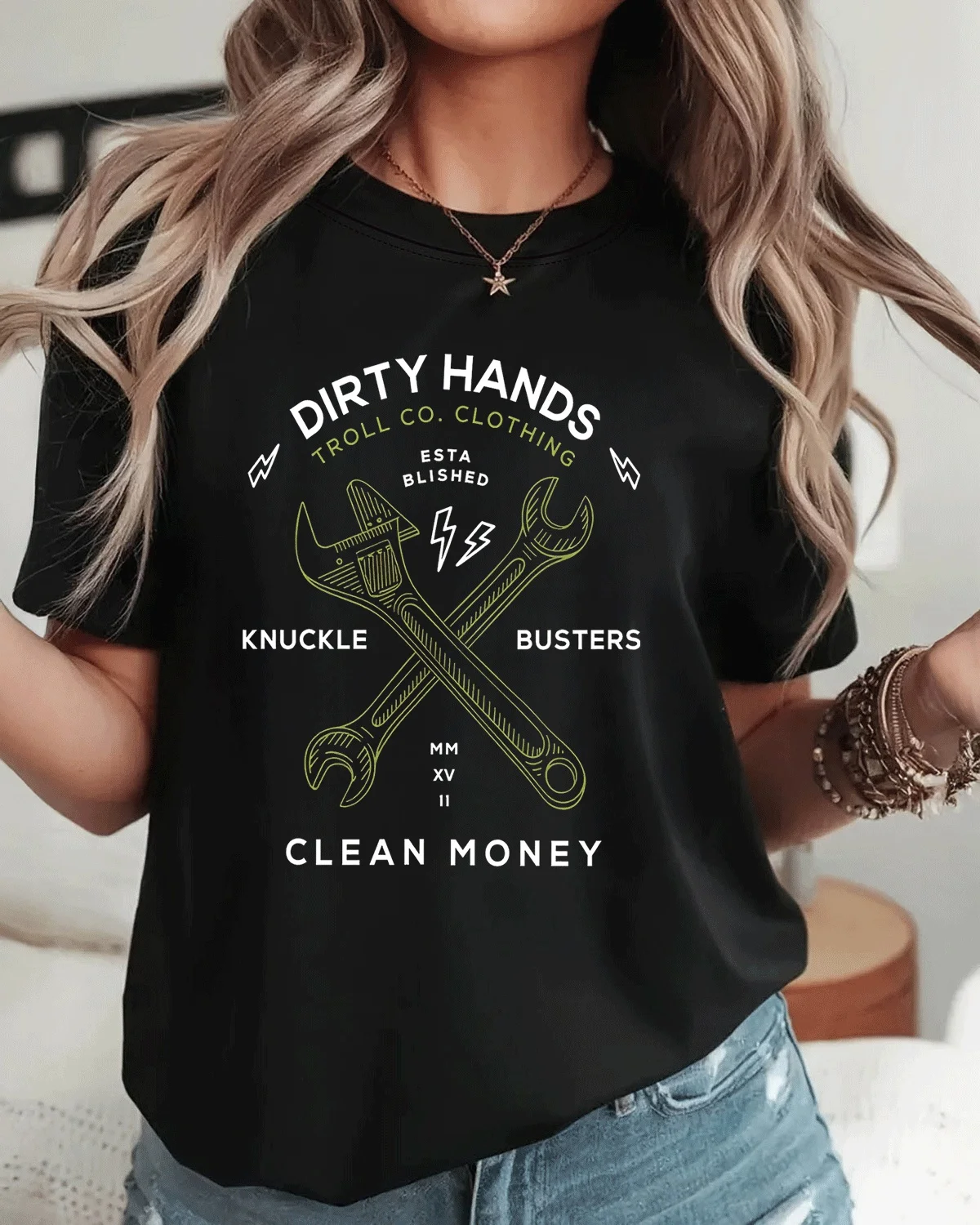 Dirty Hands Knuckle Busters Clean Money Summer Cotton Graphic T Shirt-Vintage Urban,Short Sleeve,Soft Fabric,Comfortable Fit