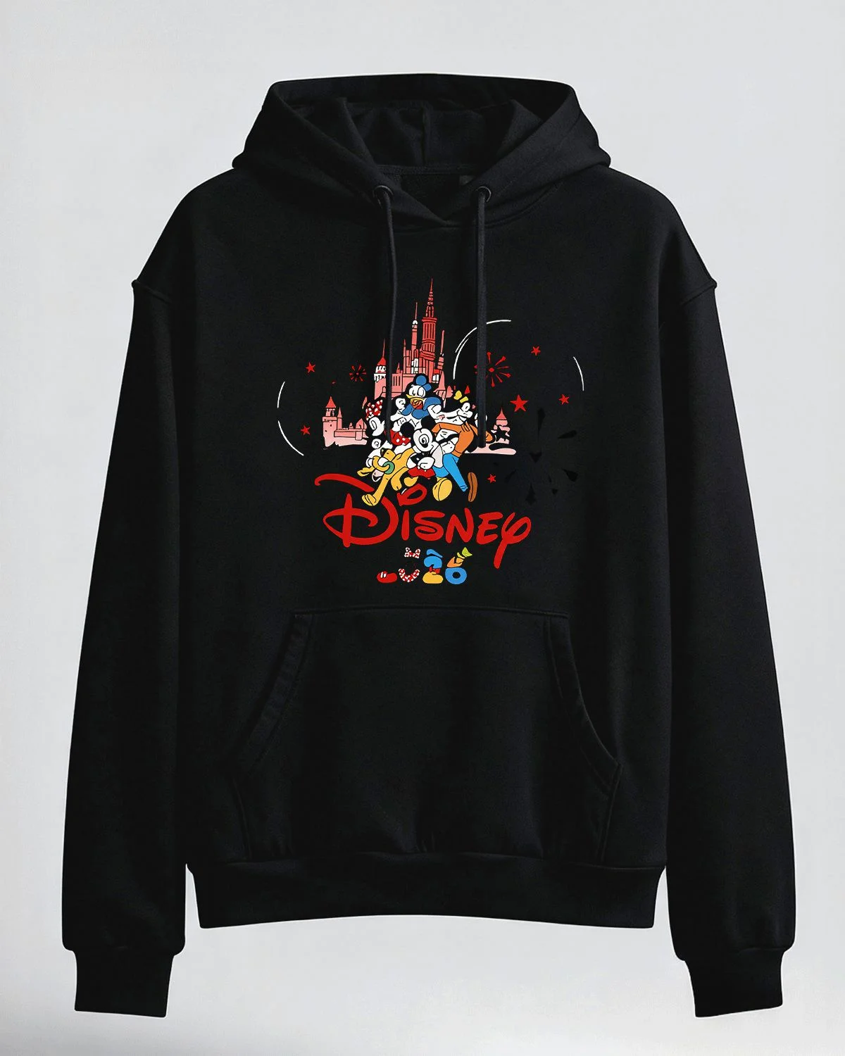 Disney Castle Characters New Year Celebration Cozy Graphic Hoodie for Men and Women - Casual Vintage, Long Sleeve, Soft Fabric, Comfortable Fit
