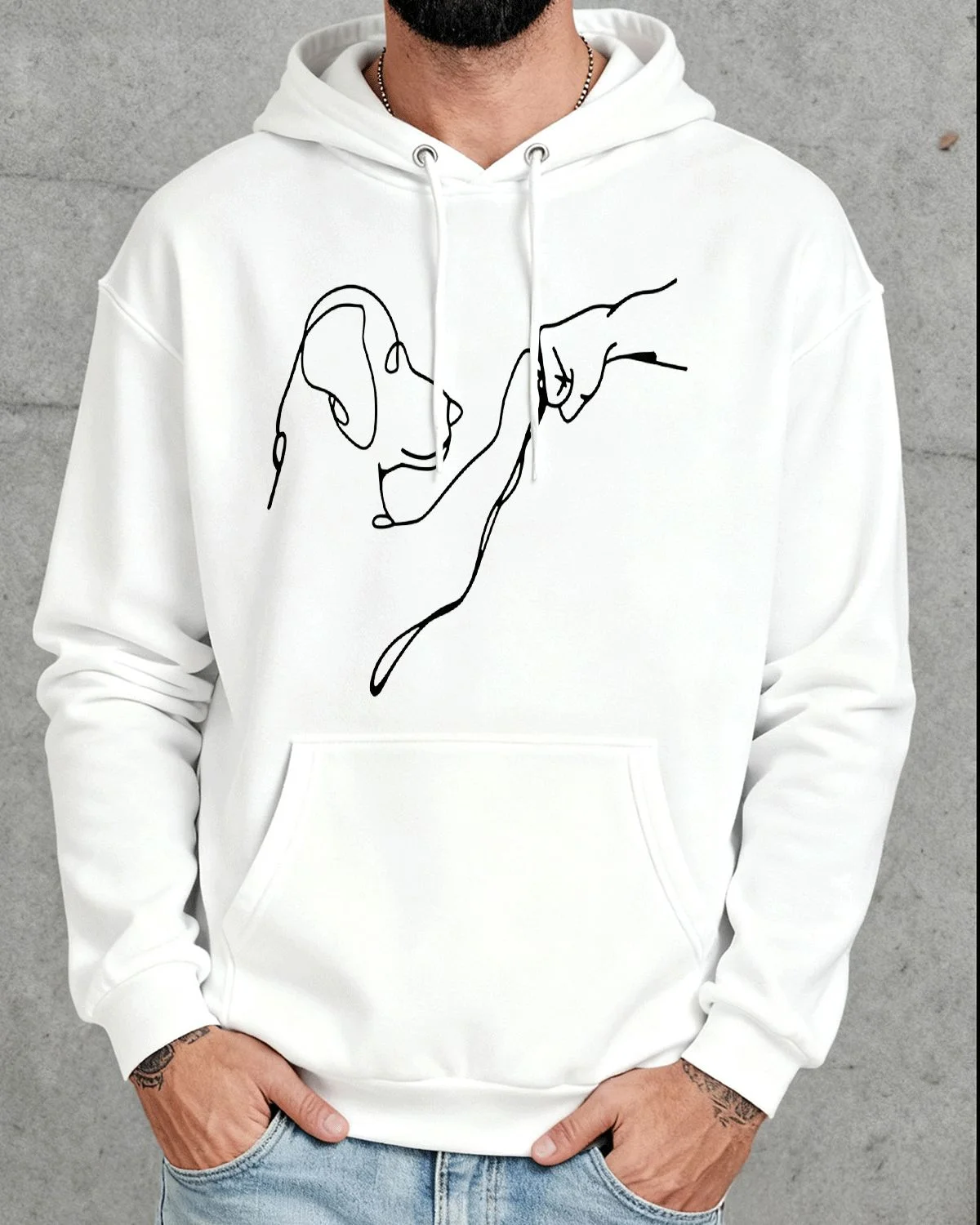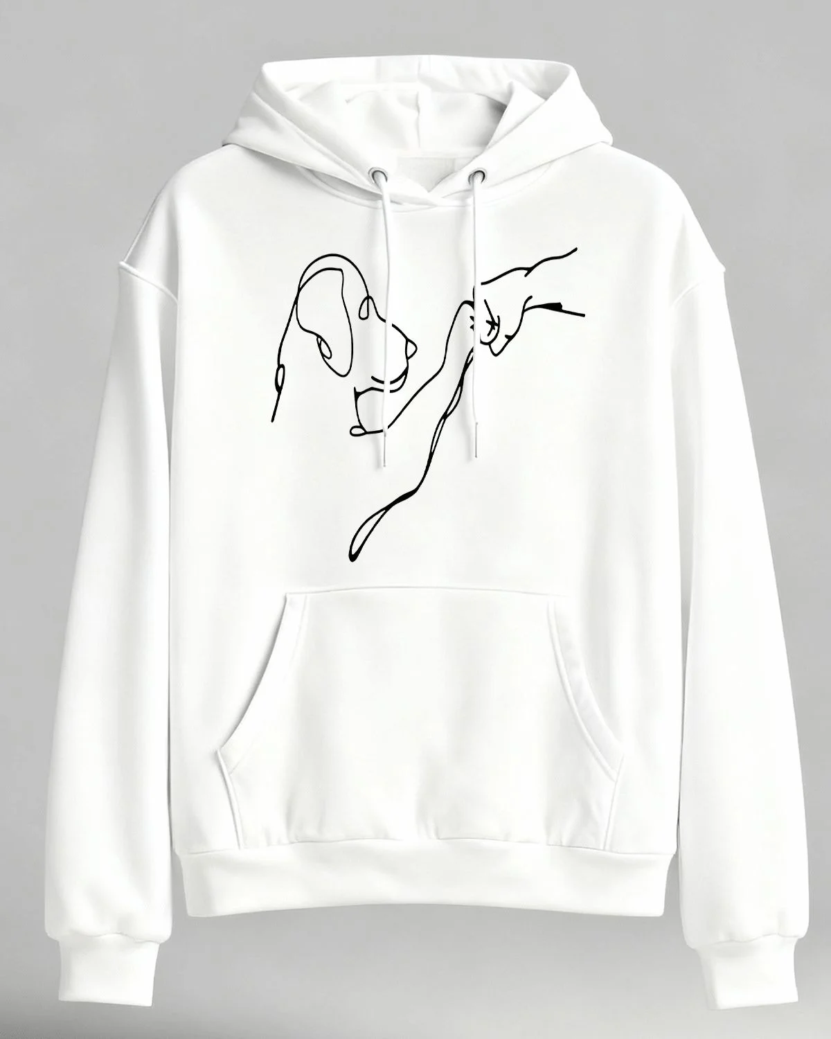 Dog and Human Fist Bump Line Art Cozy Graphic Hoodie for Men and Women - Casual Artistic, Long Sleeve, Soft Fabric, Comfortable Fit