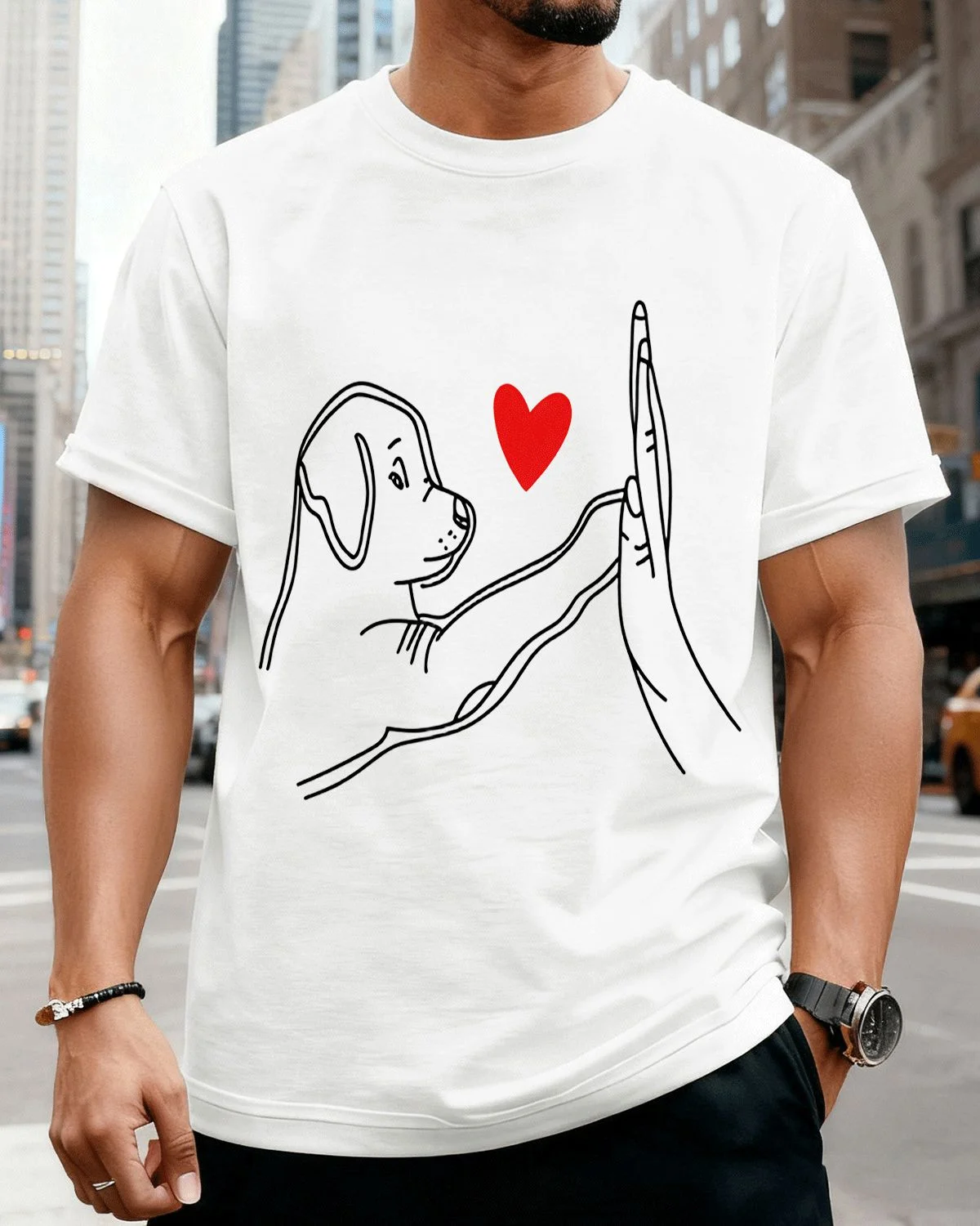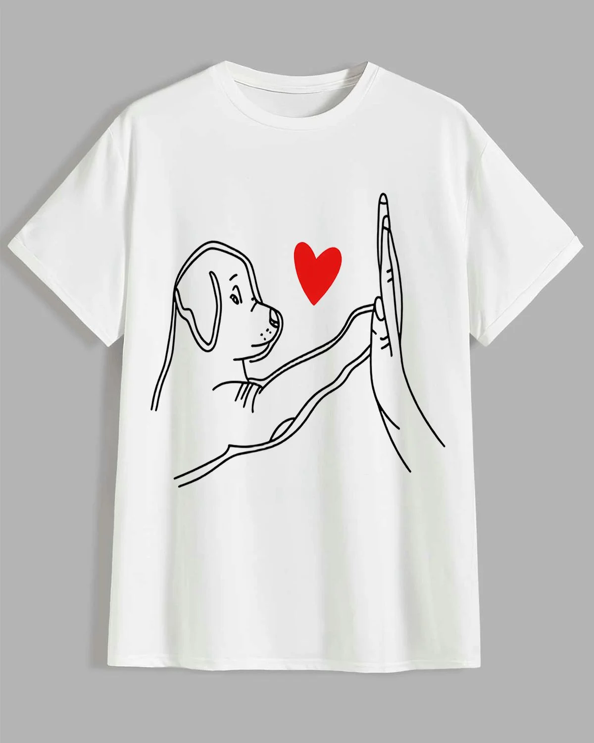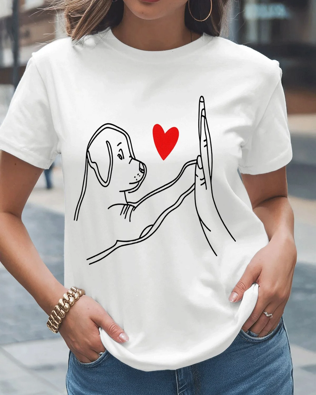 Dog Love with Mom Summer Cotton Graphic T Shirt - Casual Artistic, Short Sleeve, Soft Fabric, Comfortable Fit
