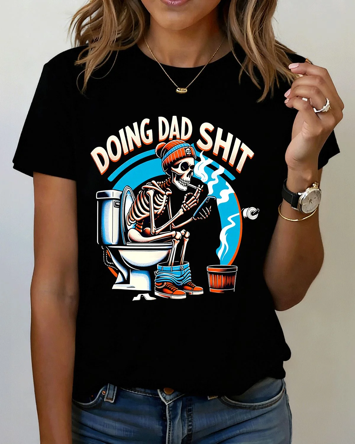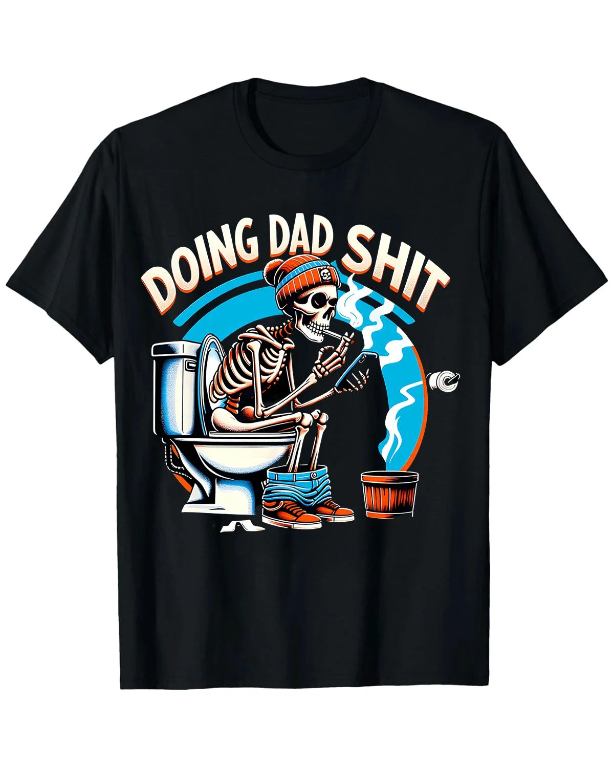 Doing Dad Stuff Skeleton Summer Cotton Graphic T Shirt - Funny Retro, Short Sleeve, Soft Fabric, Comfortable Fit