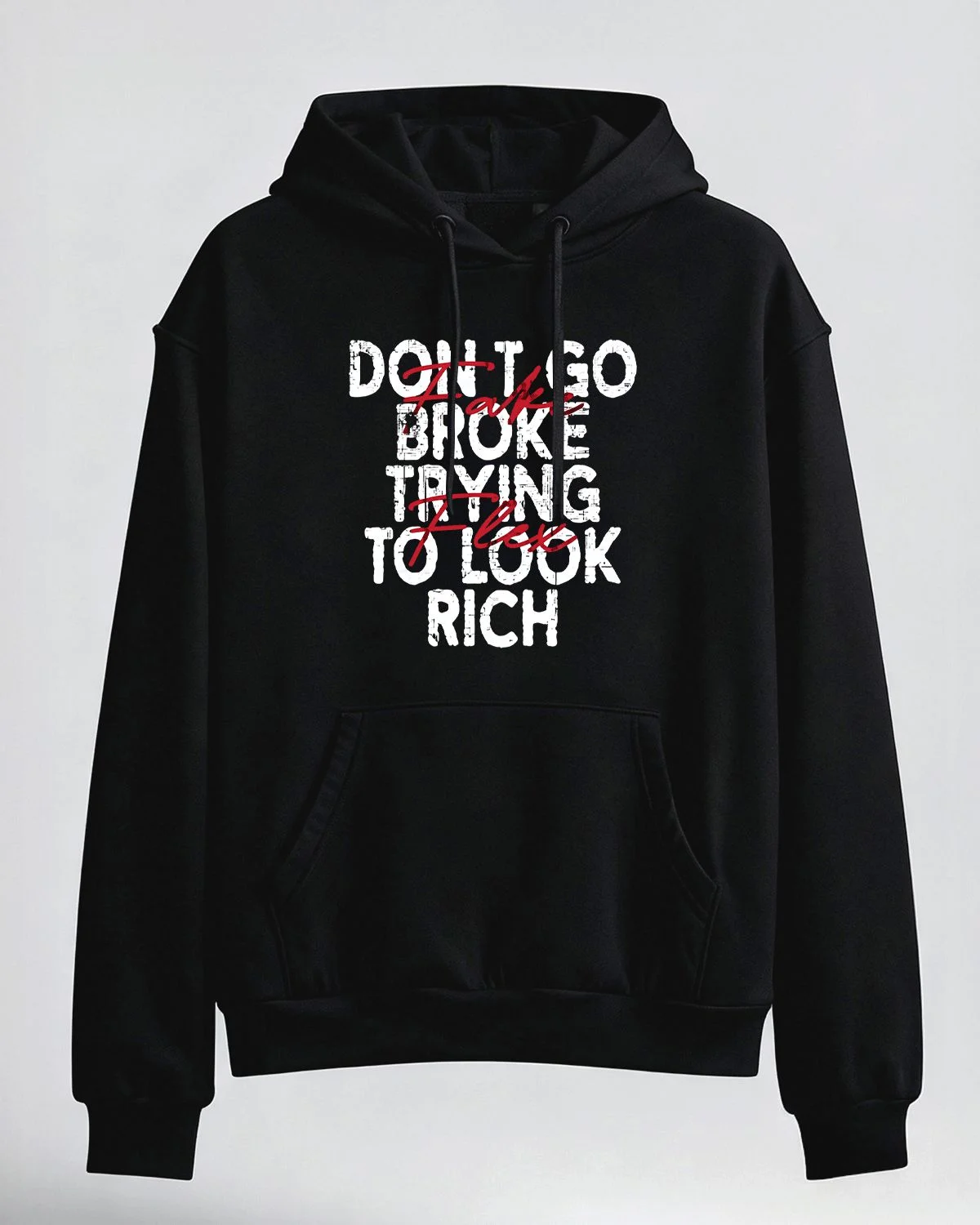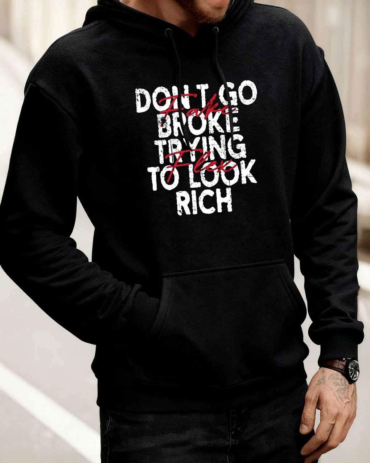 Don't Go Fake Broke Trying to Flex Cozy Cotton Graphic Hoodie with Pocket-Casual Urban,Long Sleeve,Soft Fabric,Comfortable Fit