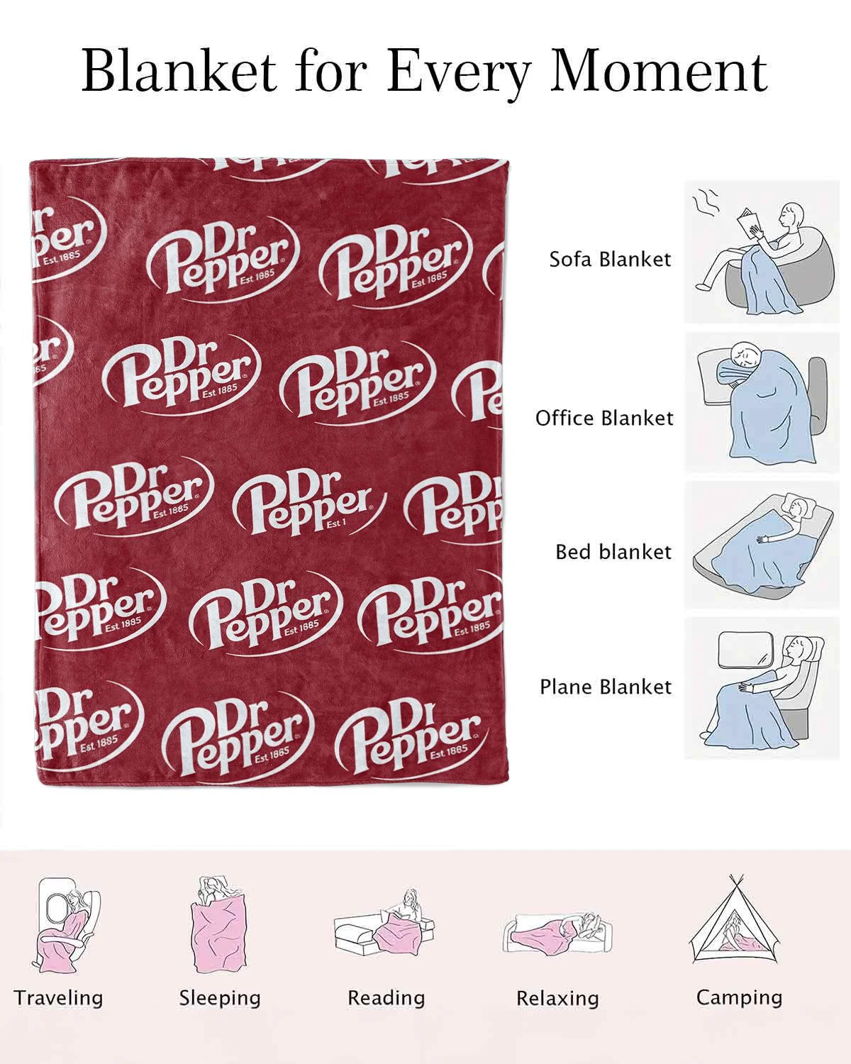Dr Pepper Soda Label Graphic Snack Packaging Print Blanket-Vintage,Trendy,Super Soft,Warm & Lightweight,Skin-Friendly Fabric