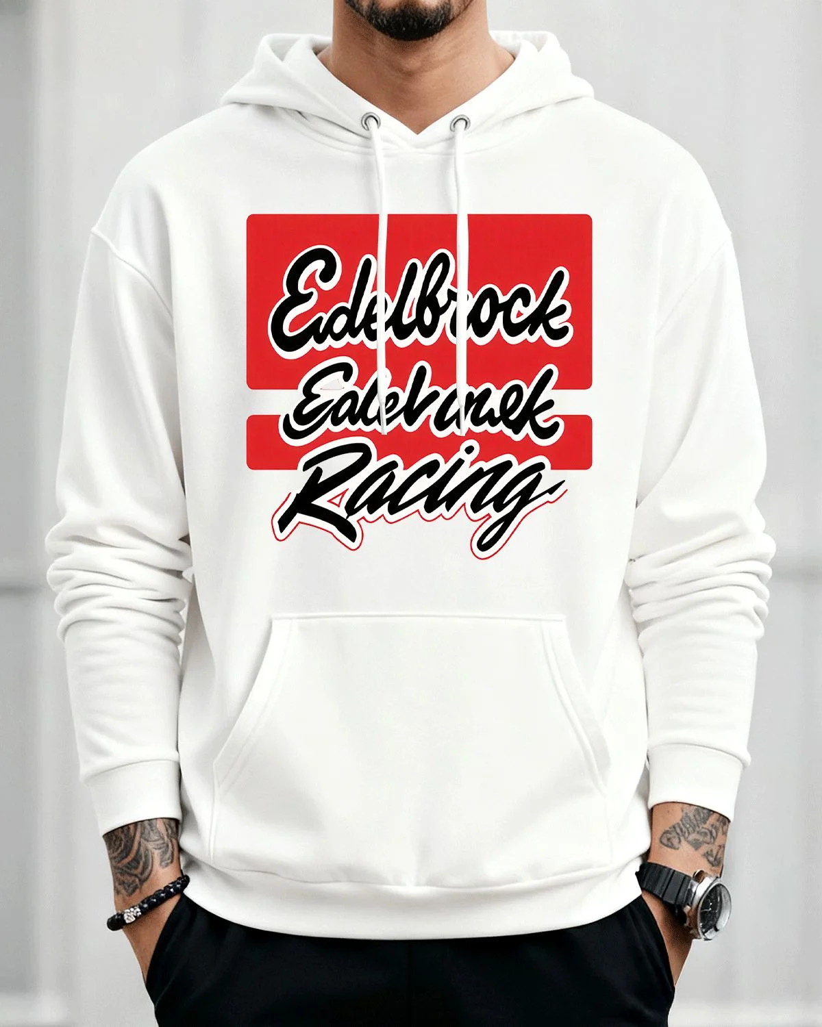 Edelbrock Birthday Racing Logo Cozy Graphic Hoodie for Men and Women - Vintage Sporty, Long Sleeve, Soft Fabric, Comfortable Fit