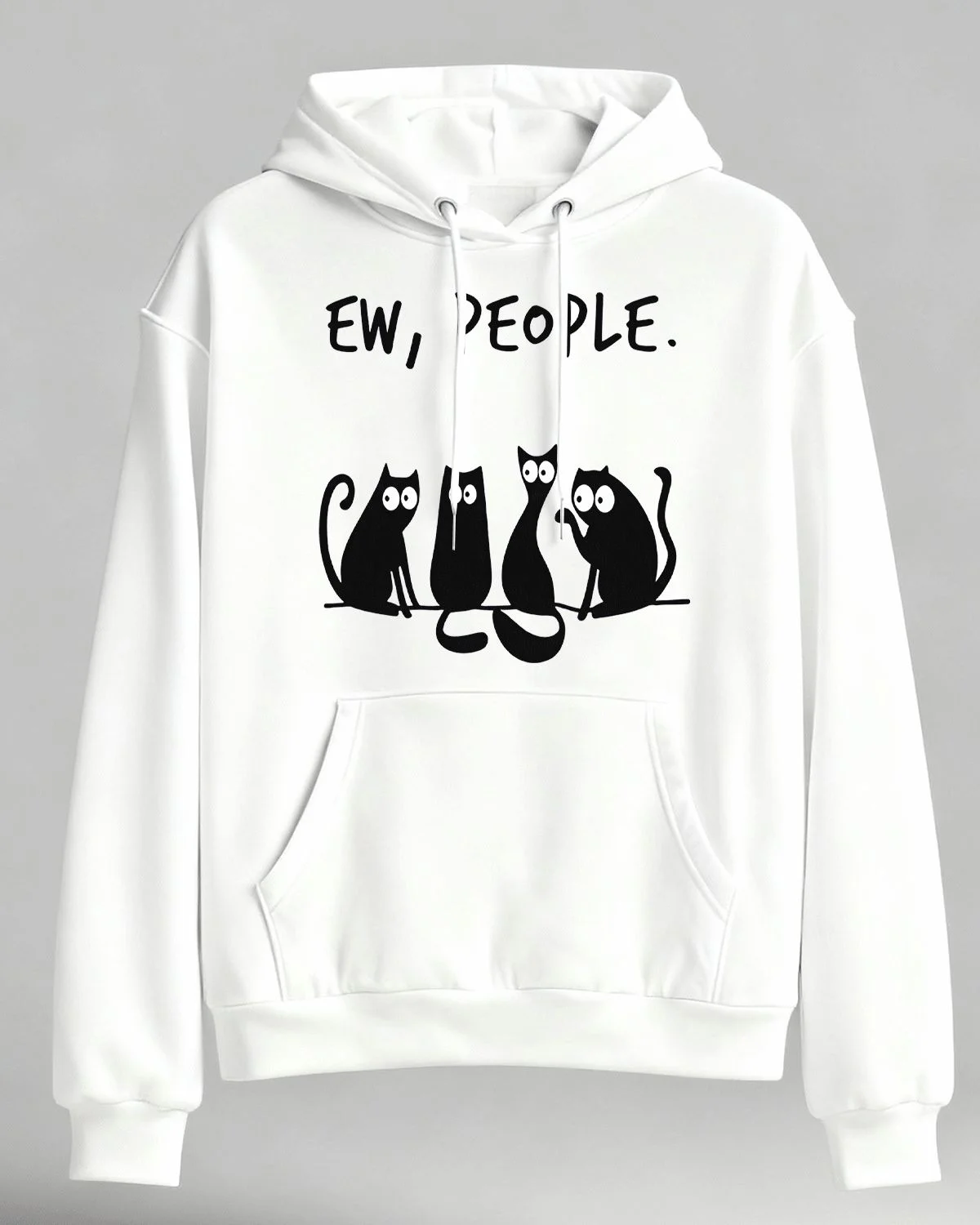 Ew People Funny Black Cats Cozy Graphic Hoodie for Men and Women - Casual Graphic, Long Sleeve, Soft Fabric, Comfortable Fit
