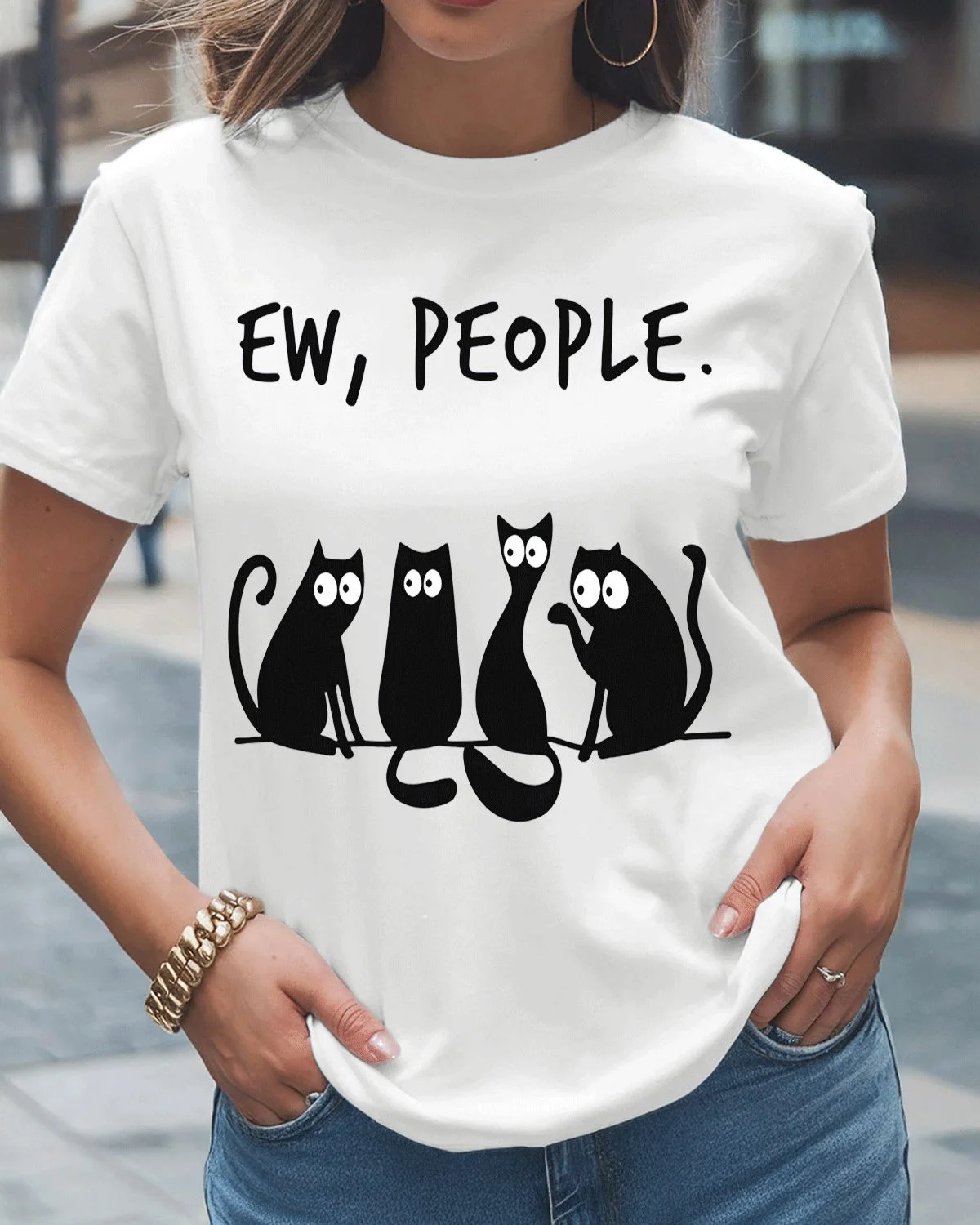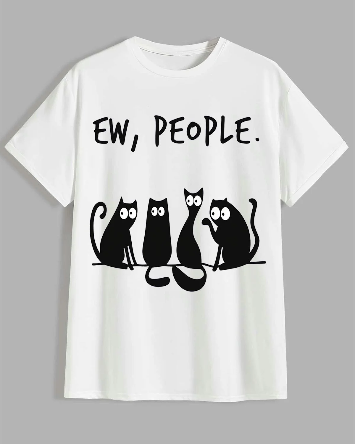 Ew People Funny Black Cats Summer Cotton Graphic T Shirt - Casual Graphic, Short Sleeve, Soft Fabric, Comfortable Fit