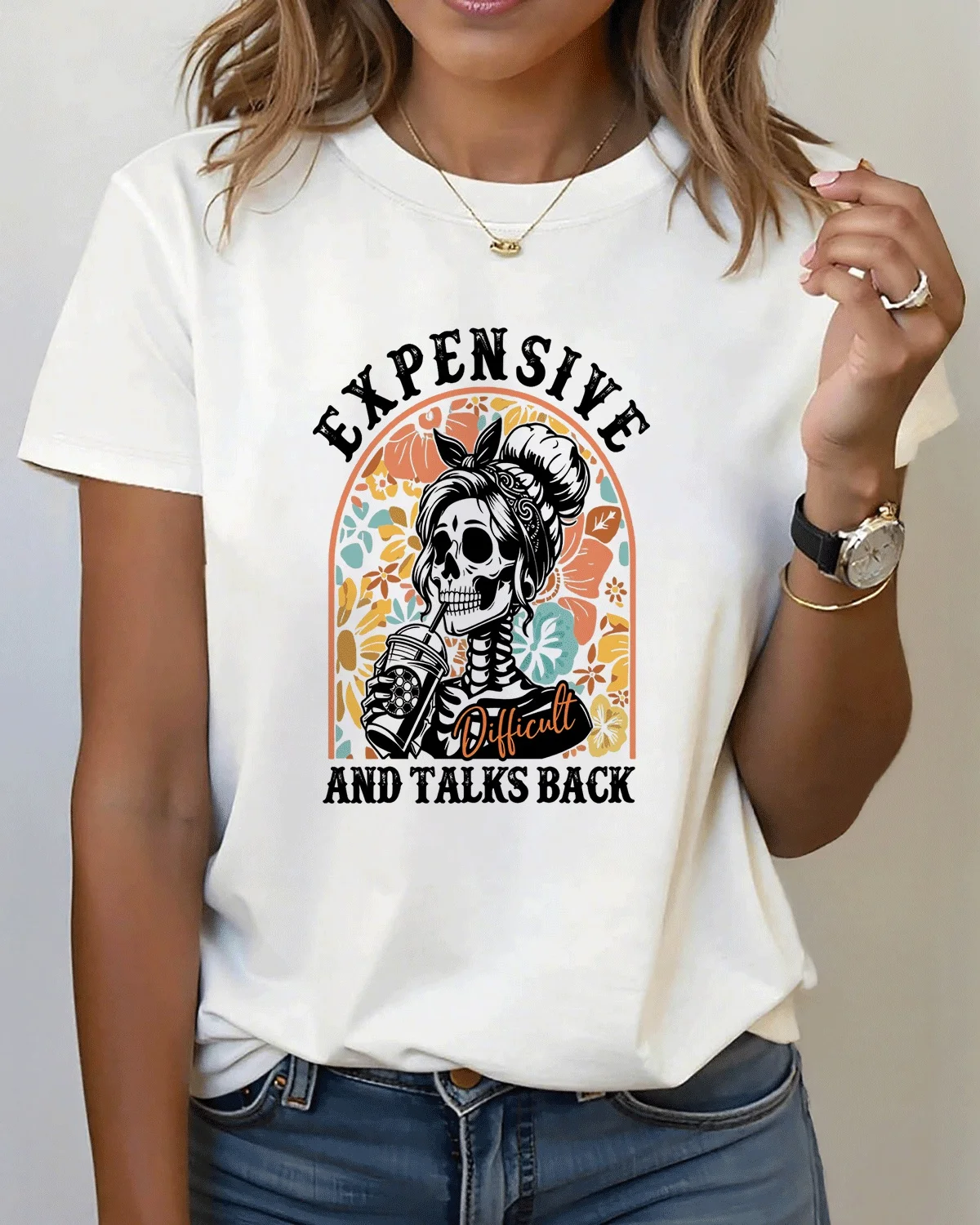 Floral Sea Turtle Summer Cotton Graphic T Shirt-Artistic Vintage,Short Sleeve,Soft Fabric,Comfortable Fit