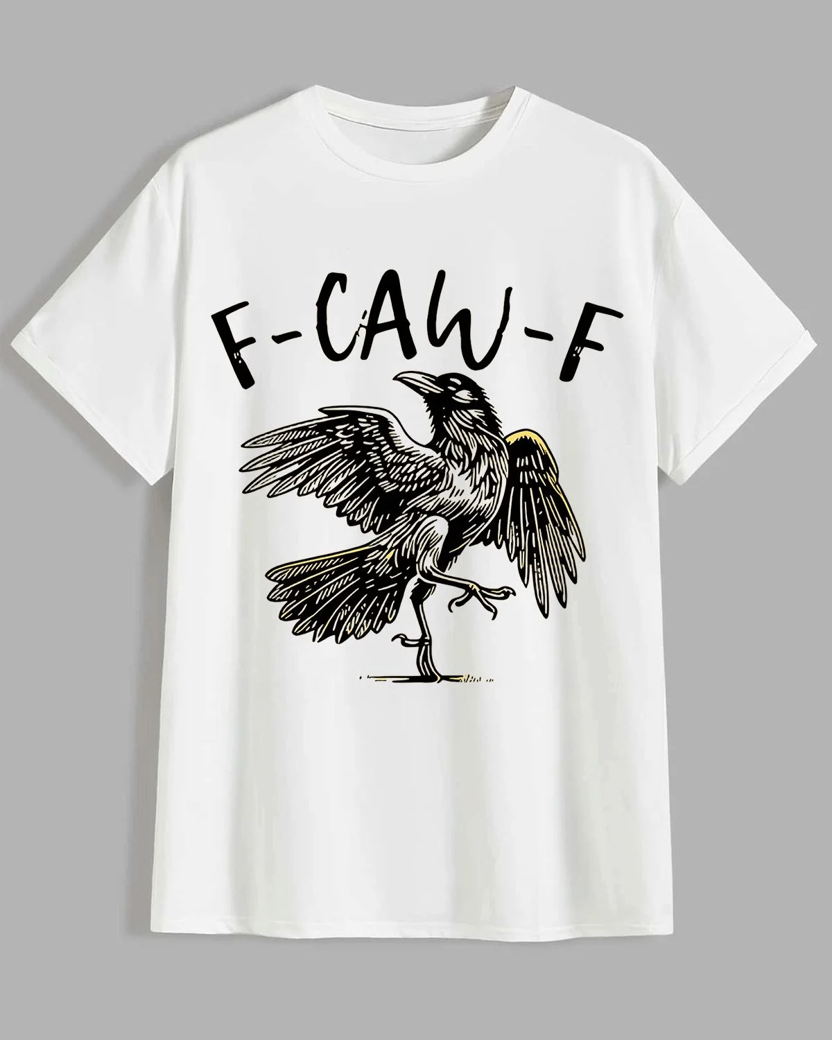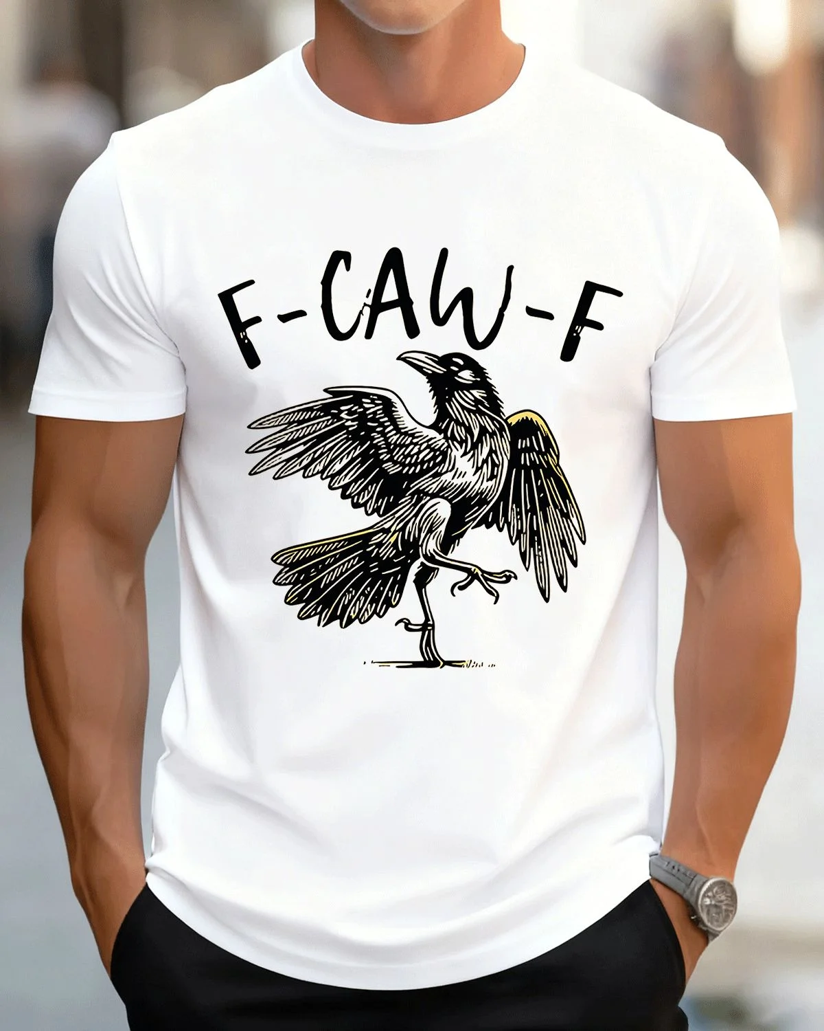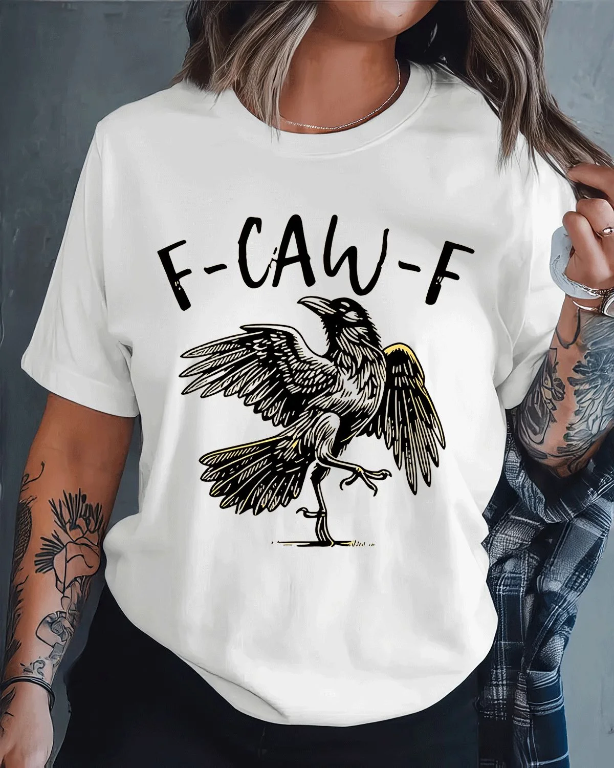 F-Caw-F Dancing Raven Summer Cotton Graphic T Shirt - Casual Vintage, Short Sleeve, Soft Fabric, Comfortable Fit