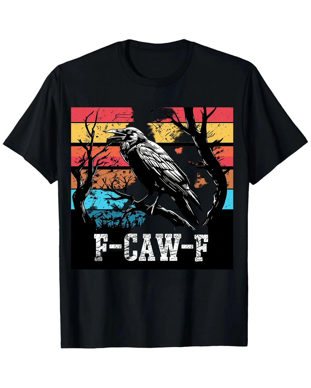 F-Caw-F Retro Raven Summer Cotton Graphic T Shirt-Vintage Artistic,Short Sleeve,Soft Fabric,Comfortable Fit