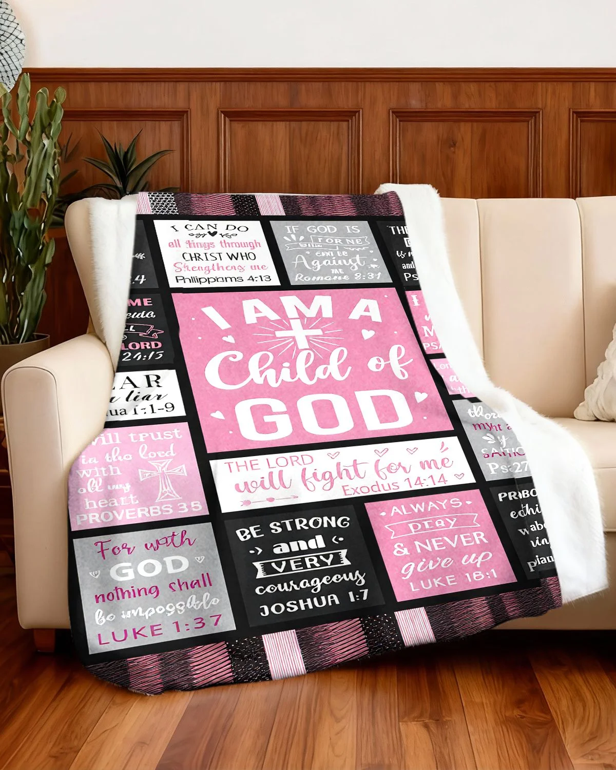 Faith and Strength Child of God Letter Cozy Flannel Blanket-Classic,Modern,Super Soft,Warm,Lightweight,For Couch,For Bed