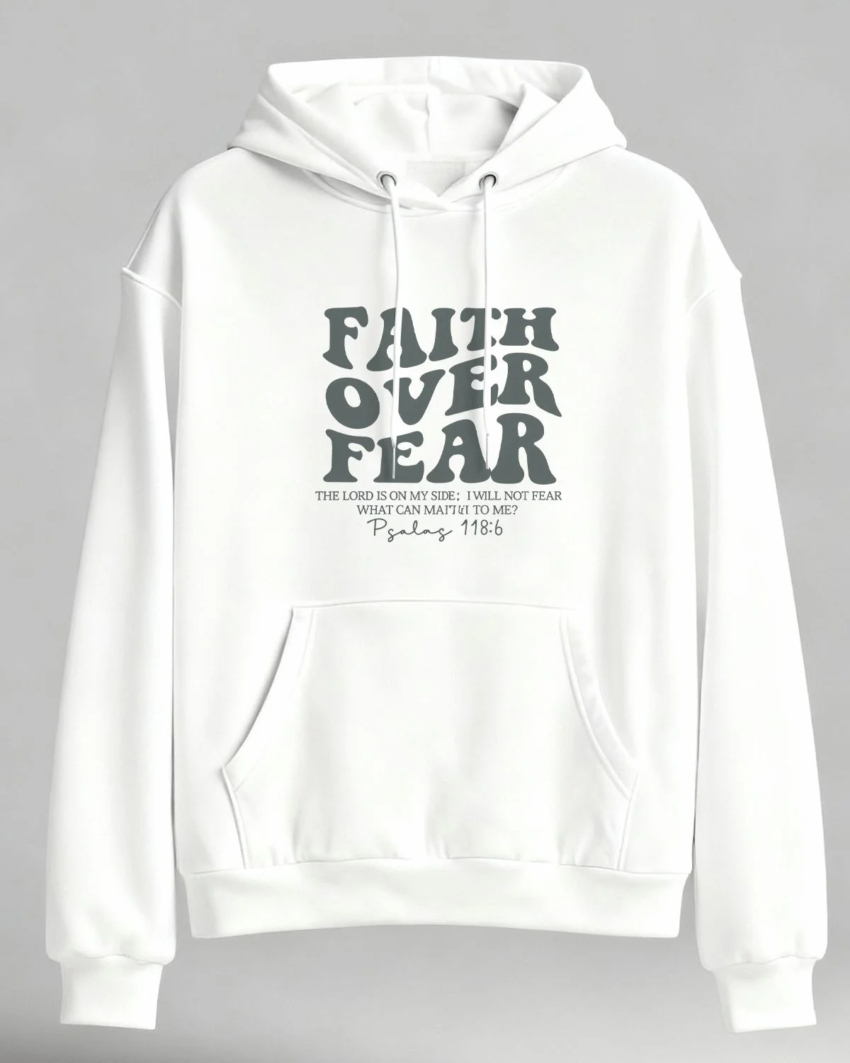 Faith Over Fear Psalm 1186 Cozy Cotton Graphic Hoodie with Pocket-Casual Vintage,Long Sleeve,Soft Fabric,Comfortable Fit