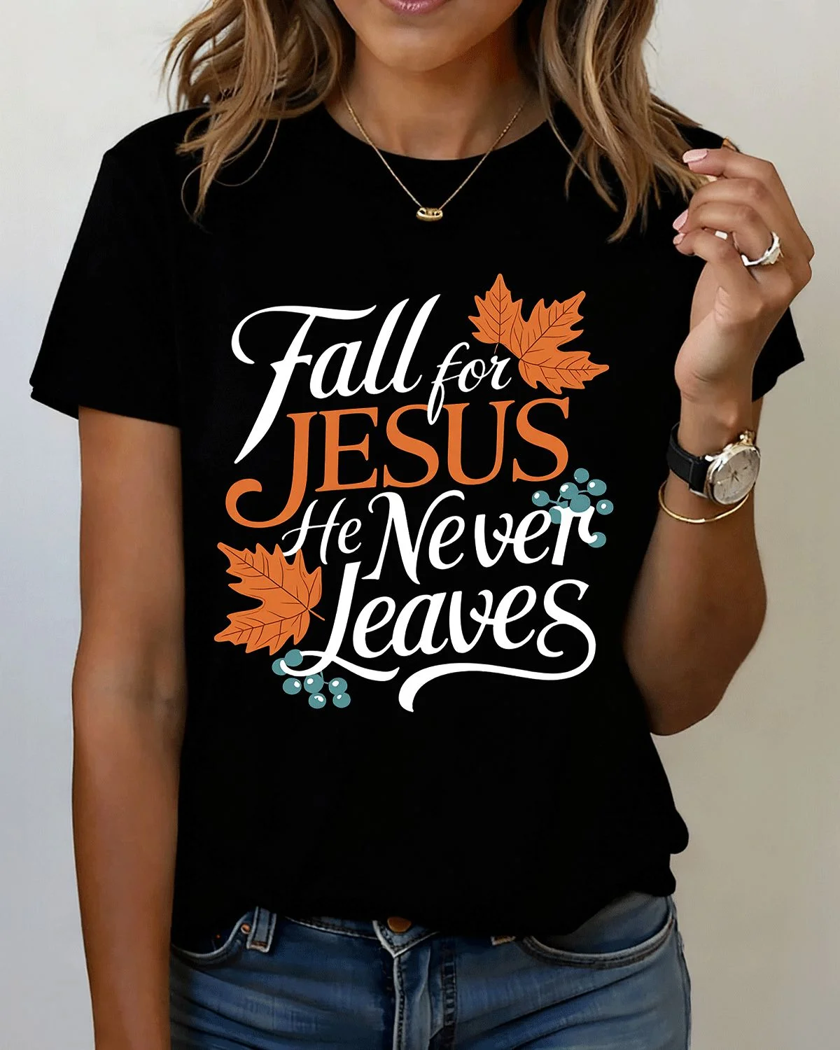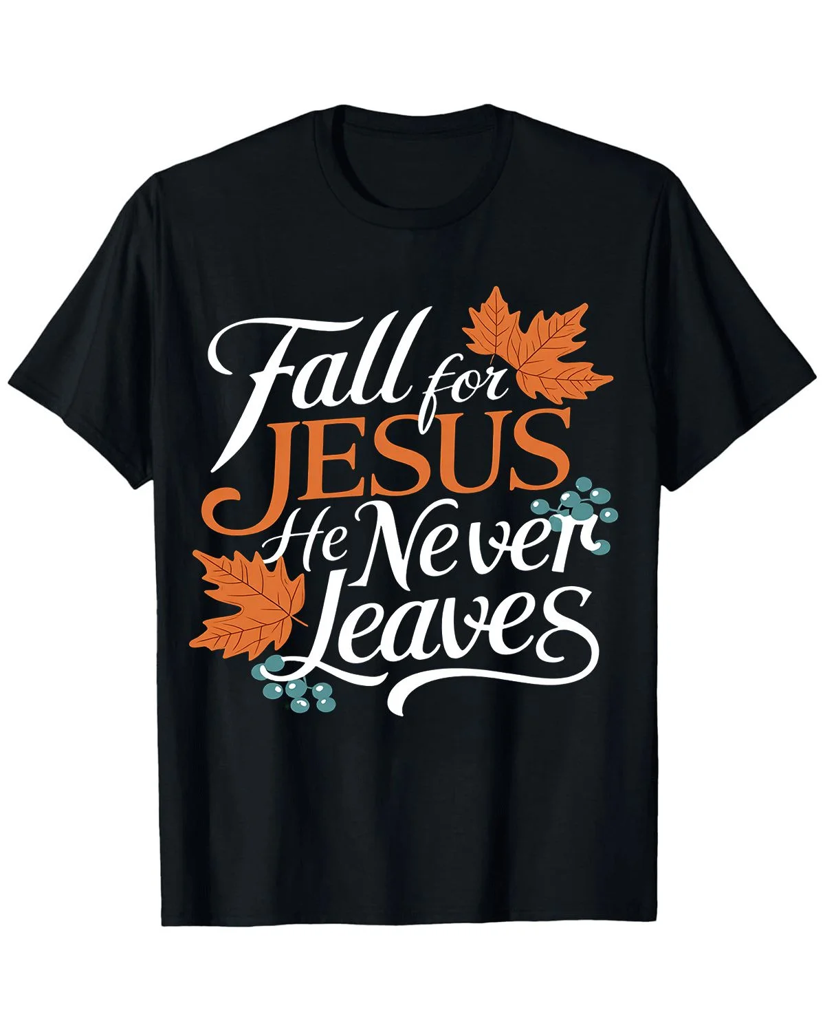 Fall for Jesus He Never Leaves Summer Cotton Graphic T Shirt-Casual Vintage,Short Sleeve,Soft Fabric,Comfortable Fit