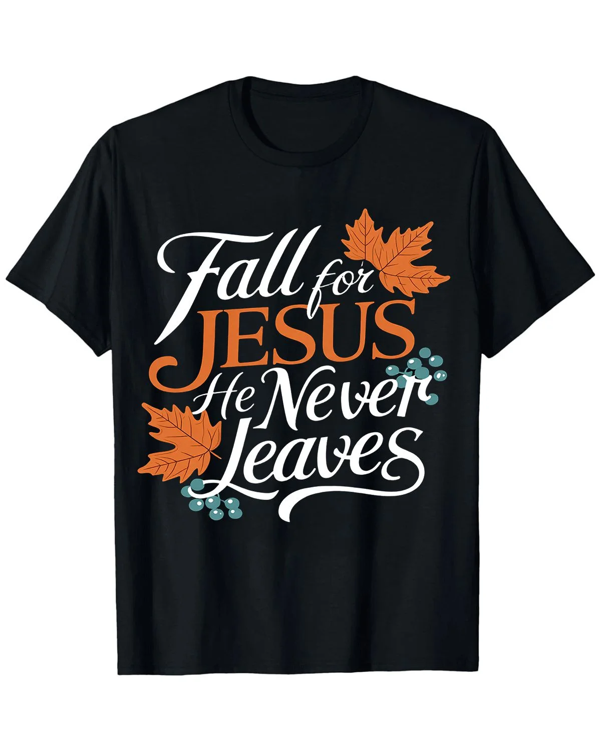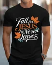 Fall for Jesus He Never Leaves Summer Cotton Graphic T Shirt-Casual Vintage,Short Sleeve,Soft Fabric,Comfortable Fit