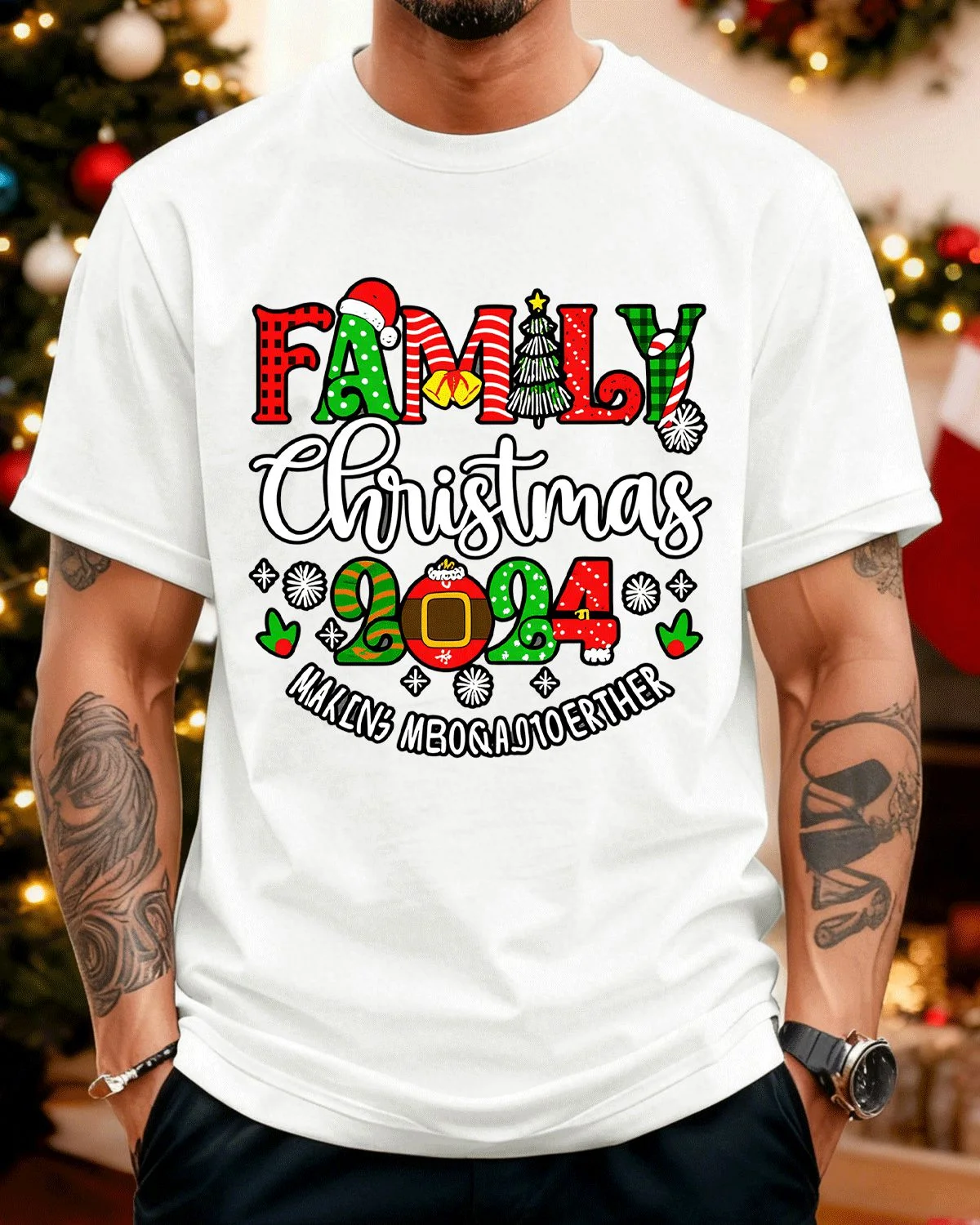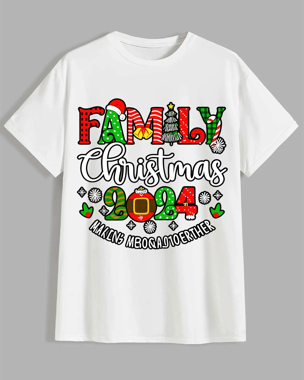 Family Christmas 2024 Making Memories Together Summer Cotton Graphic T Shirt - Casual Vintage, Short Sleeve, Soft Fabric, Comfortable Fit