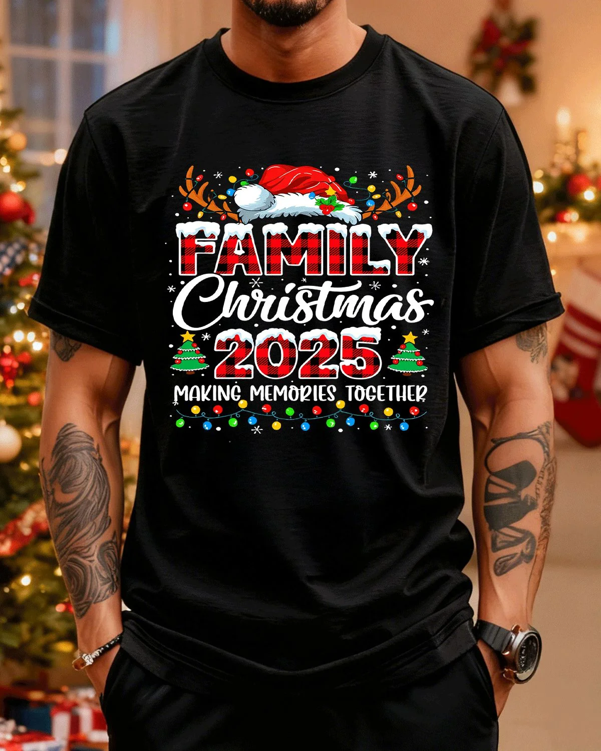 Family Christmas 2025 Making Memories Summer Cotton Graphic T Shirt - Casual Vintage, Short Sleeve, Soft Fabric, Comfortable Fit