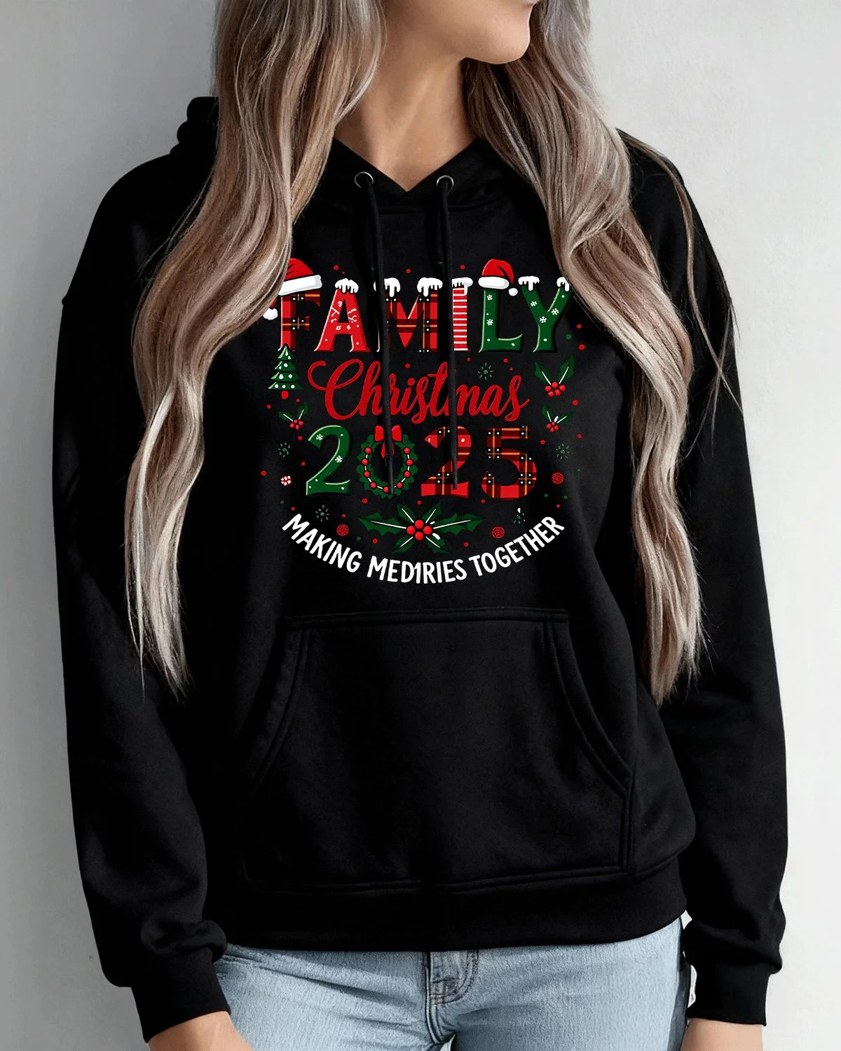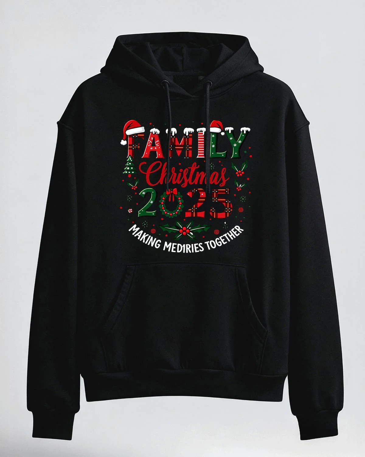 Family Christmas 2025 Making Memories Together Cozy Graphic Hoodie for Men and Women - Casual Vintage, Long Sleeve, Soft Fabric, Comfortable Fit