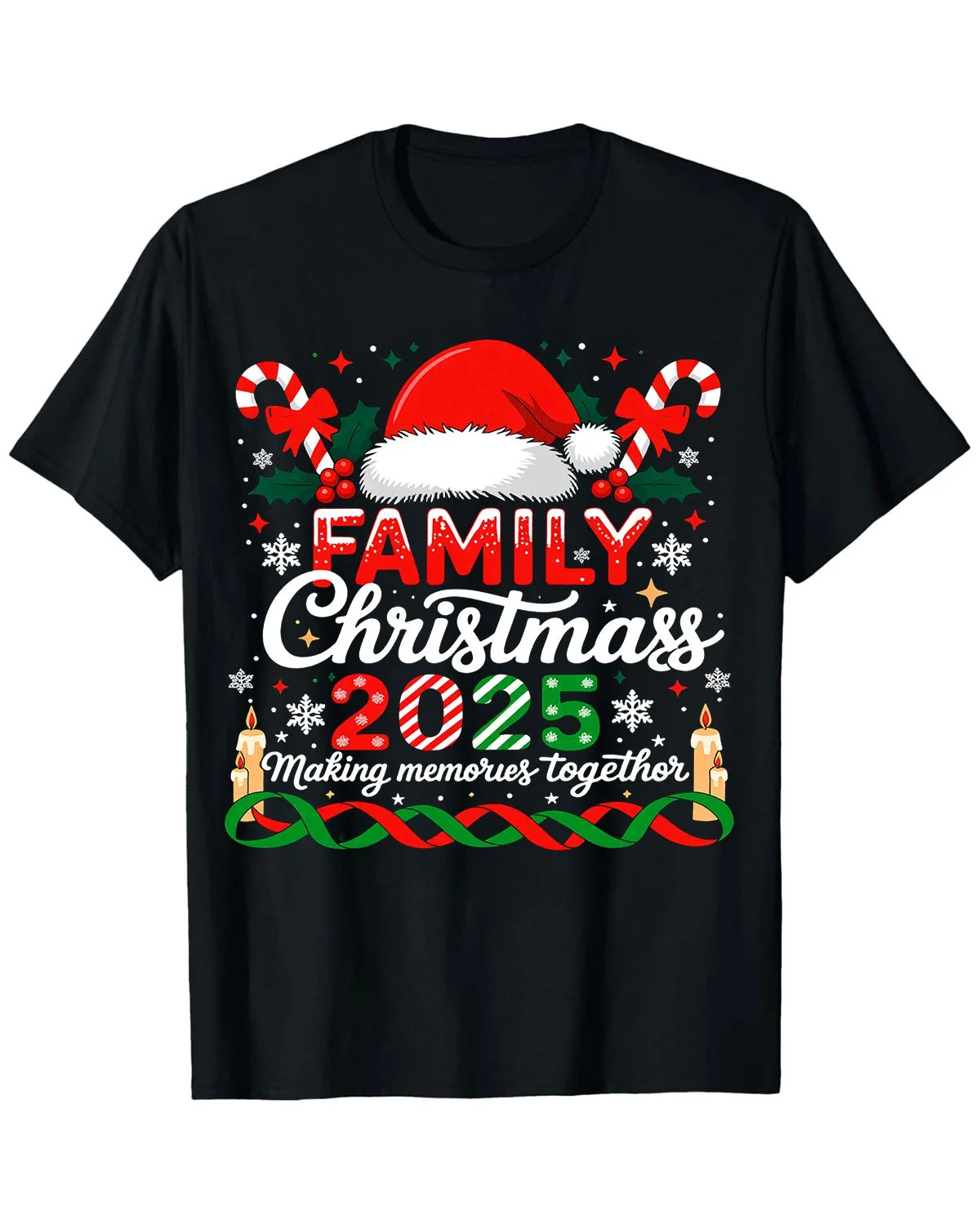 Family Christmas 2025 Making Memories Together Summer Cotton Graphic T Shirt - Casual Vintage, Short Sleeve, Soft Fabric, Comfortable Fit