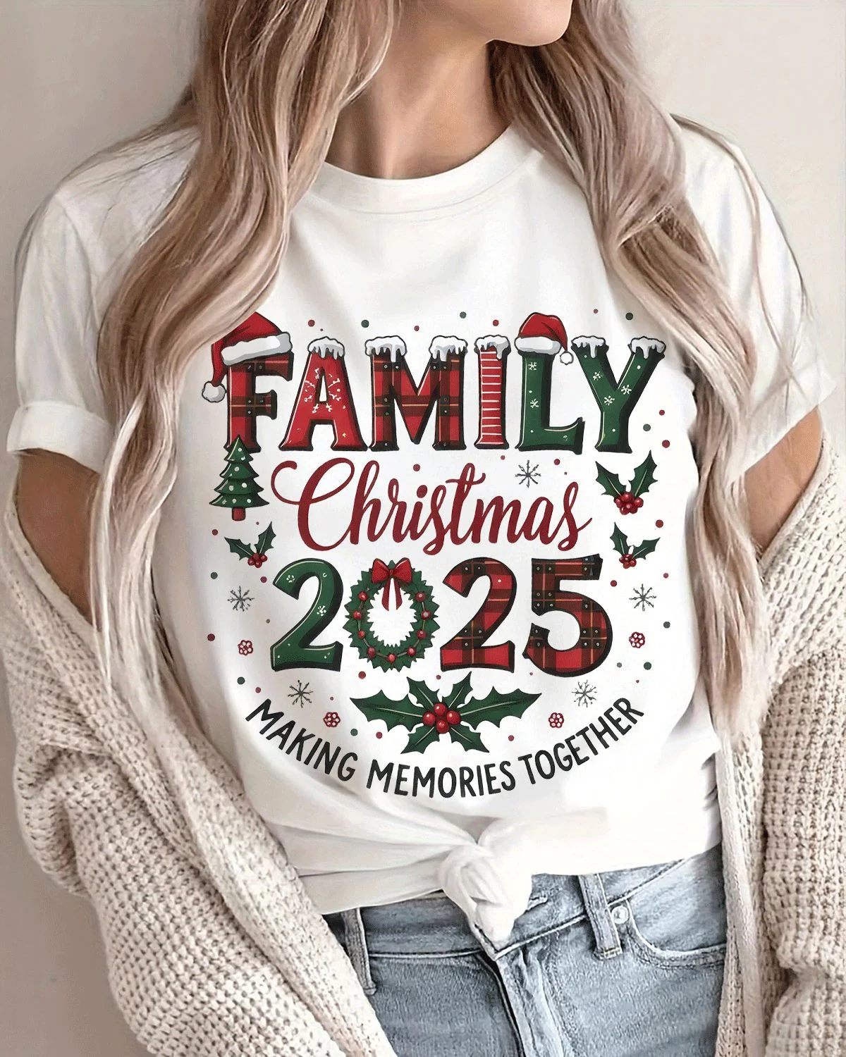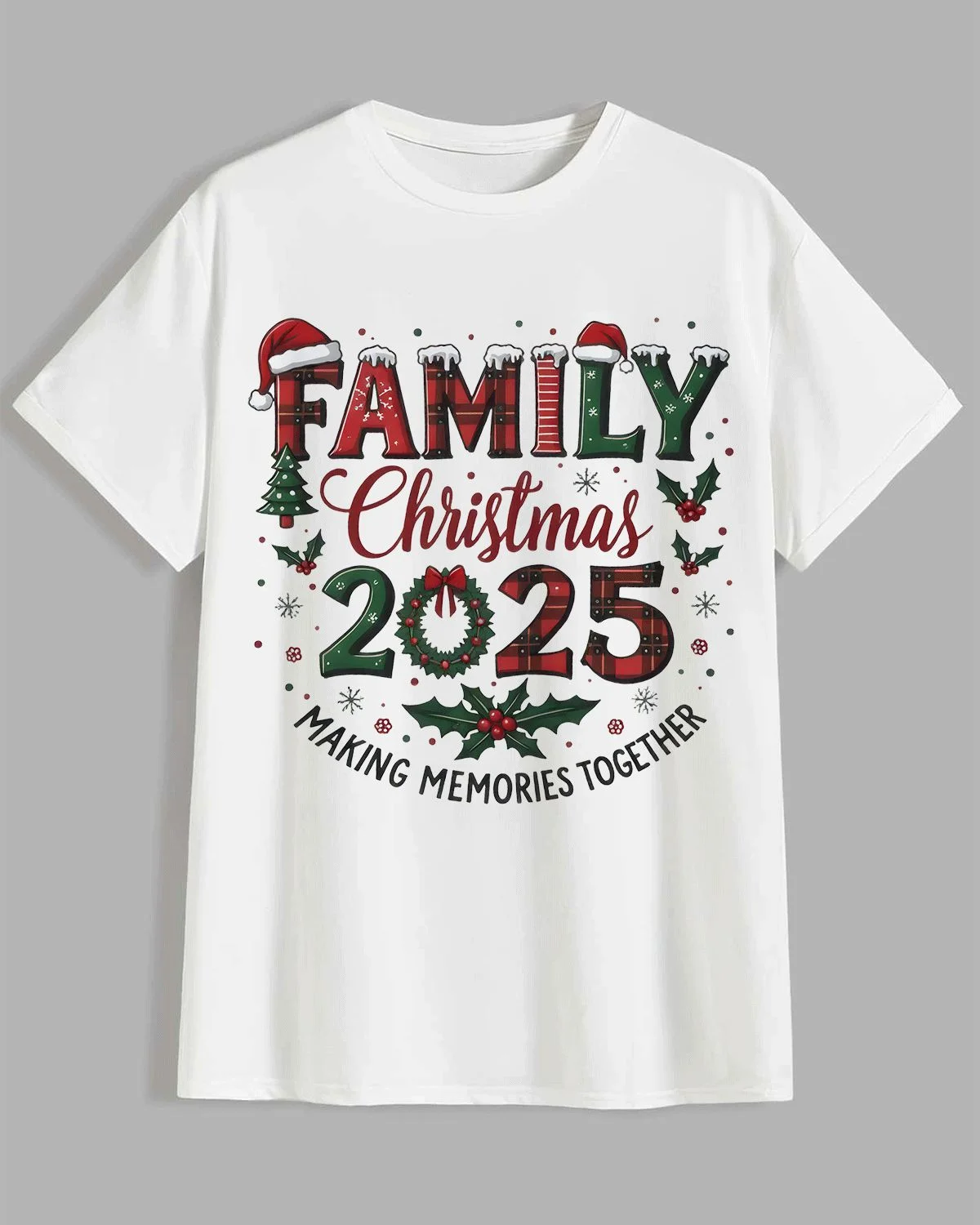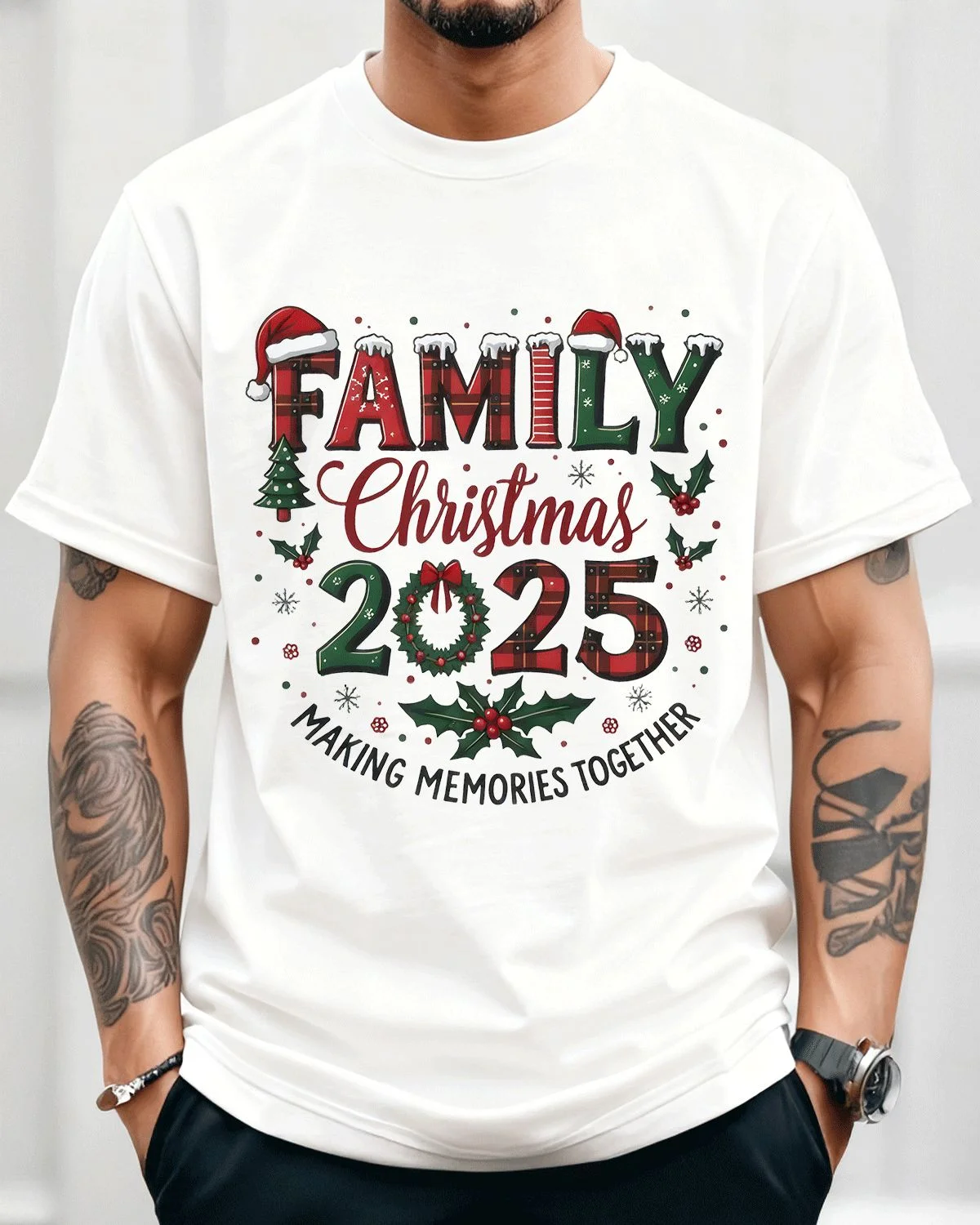 Family Christmas 2025 Making Memories Together Summer Cotton Graphic T Shirt - Casual Vintage,Short Sleeve,Soft Fabric,Comfortable Fit