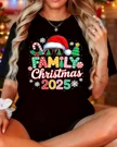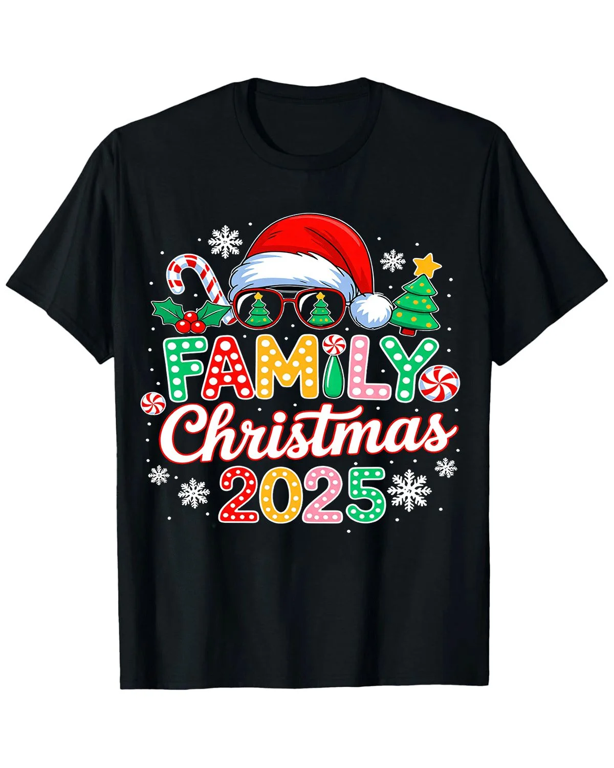 Family Christmas 2025 Santa Hat and Candy Summer Cotton Graphic T Shirt - Casual Vintage, Short Sleeve, Soft Fabric, Comfortable Fit