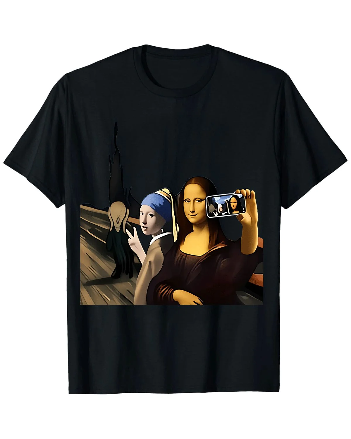 Famous Art Selfie Parody Summer Cotton Graphic T Shirt - Funny Retro, Short Sleeve, Soft Fabric, Comfortable Fit
