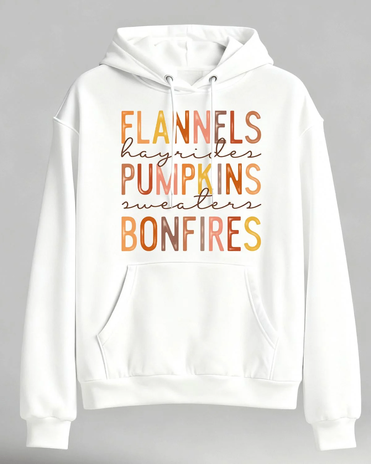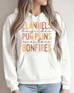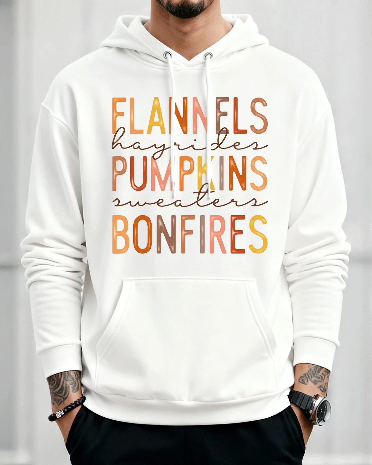 Flannels Hayrides Pumpkins Sweaters Bonfires Cozy Graphic Hoodie for Men and Women - Casual Vintage, Long Sleeve, Soft Fabric, Comfortable Fit