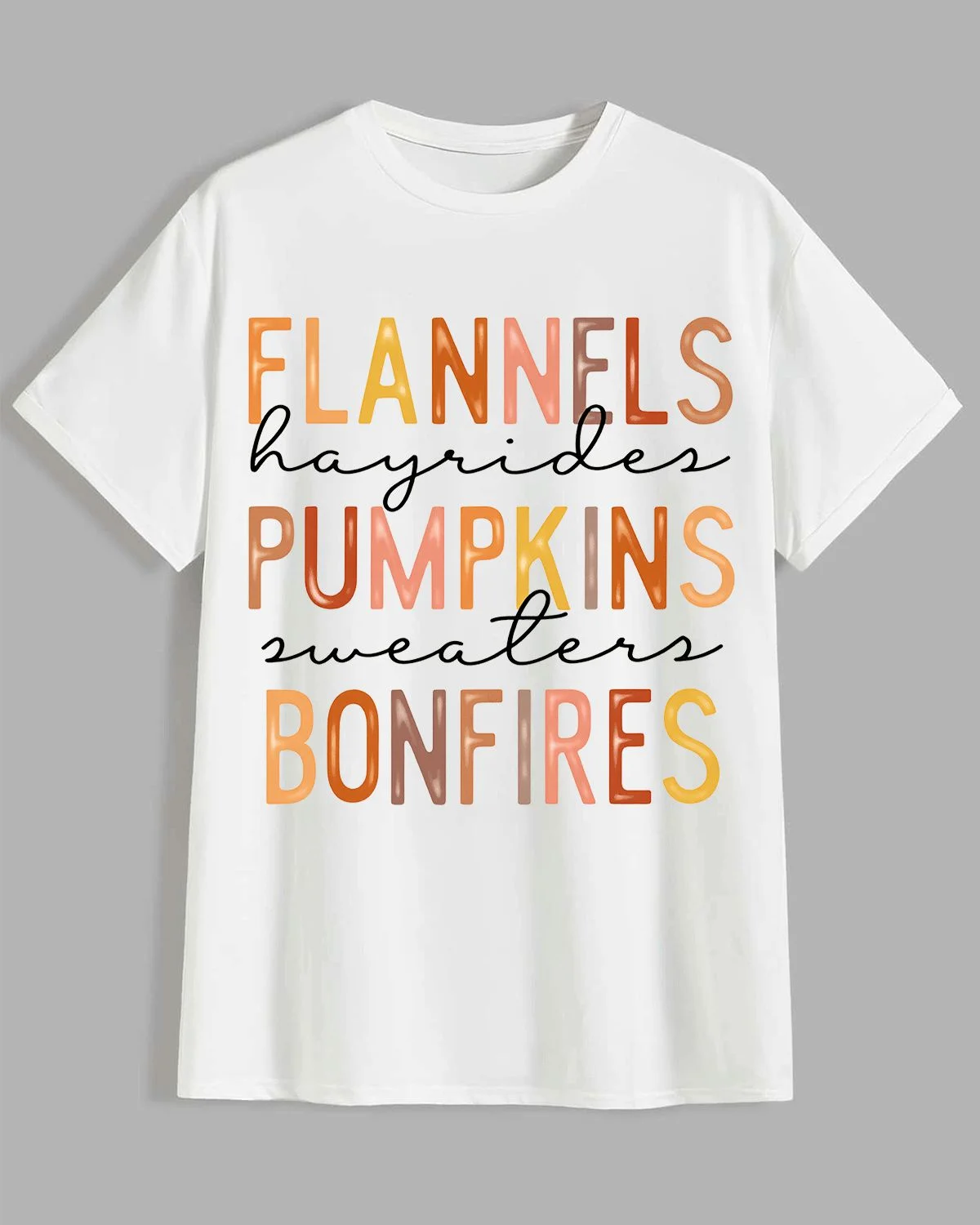 Flannels Hayrides Pumpkins Sweaters Bonfires Summer Cotton Graphic T Shirt - Casual Vintage, Short Sleeve, Soft Fabric, Comfortable Fit