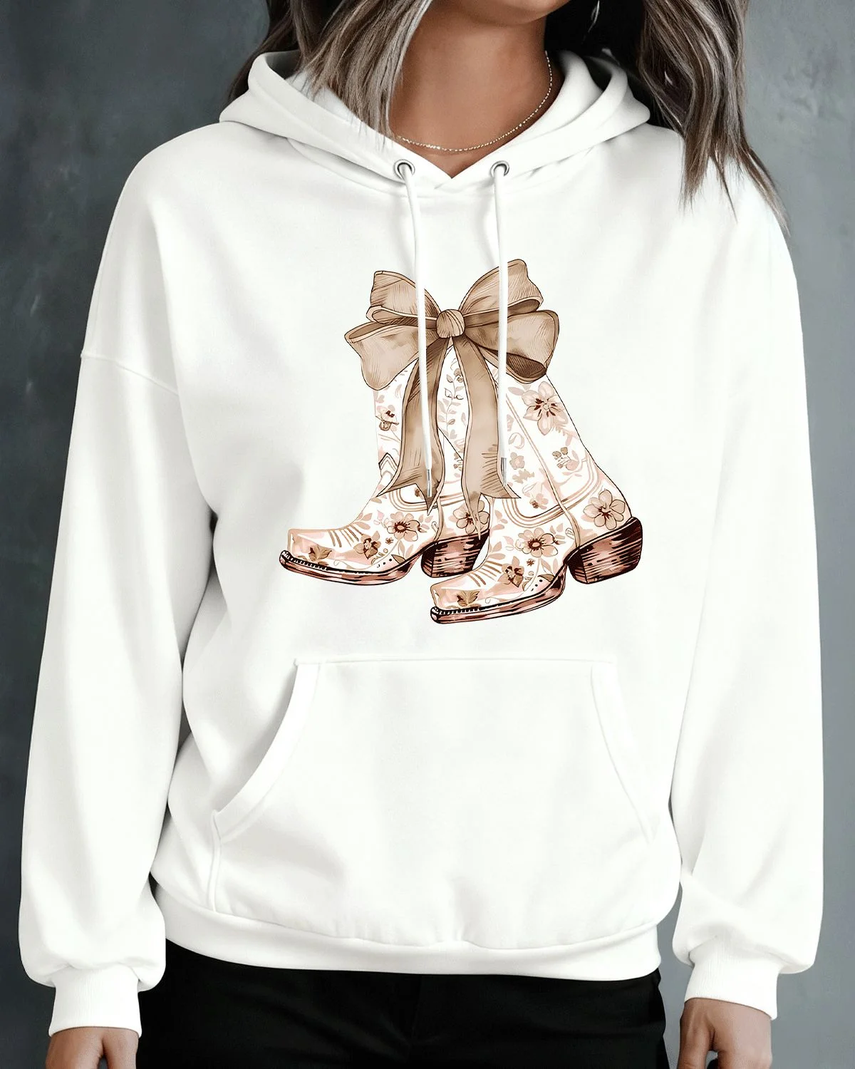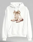 Floral Cowboy Boots with Bow Summer Cozy Graphic Hoodie - Vintage Boho, Long Sleeve, Soft Fabric, Comfortable Fit