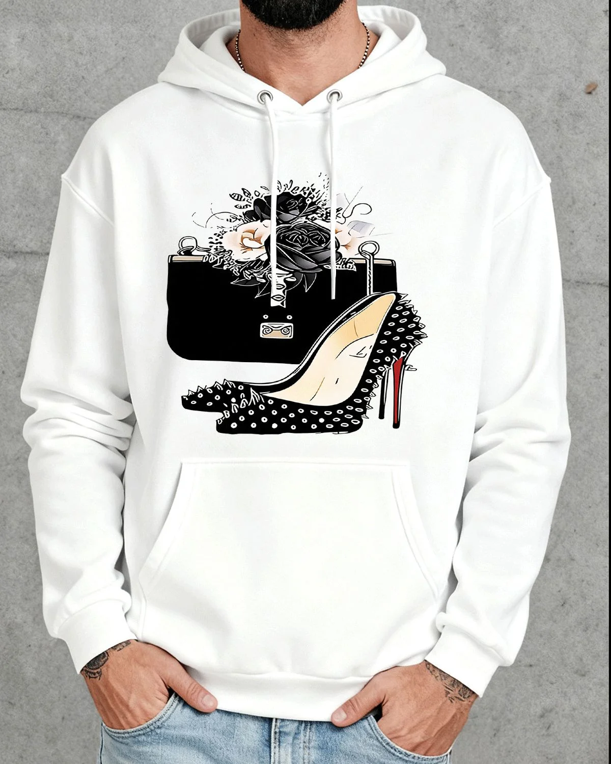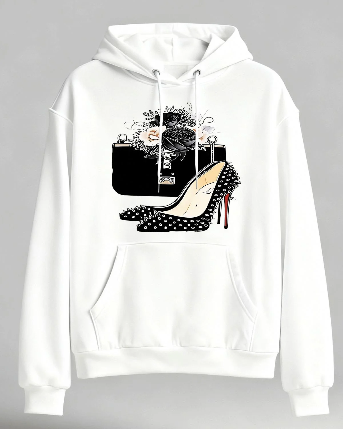 Floral Handbag and Studded High Heel Cozy Graphic Hoodie for Men and Women - Chic Vintage, Long Sleeve, Soft Fabric, Comfortable Fit