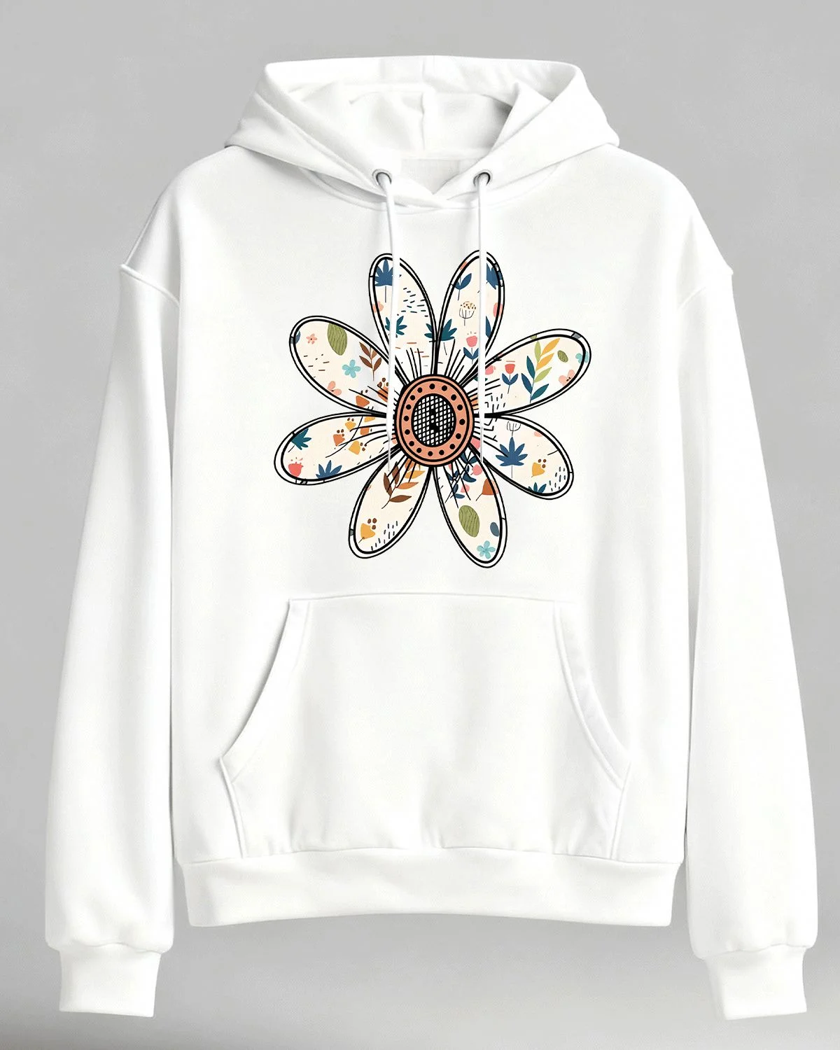 Floral Pattern Daisy Cozy Graphic Hoodie for Men and Women - Artistic Boho, Long Sleeve, Soft Fabric, Comfortable Fit
