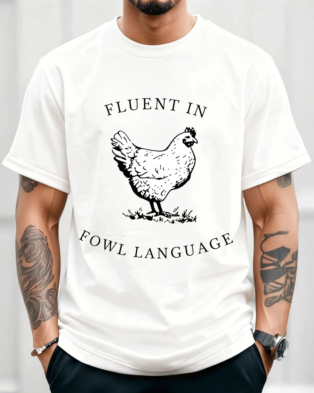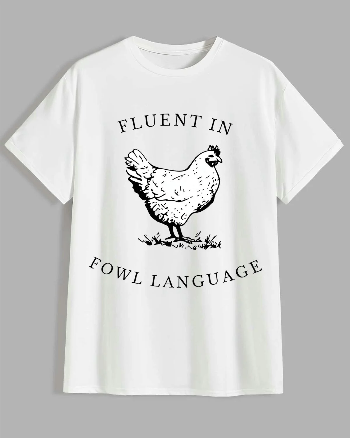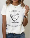 Fluent in Fowl Language Summer Cotton Graphic T Shirt - Funny Vintage, Short Sleeve, Soft Fabric, Comfortable Fit