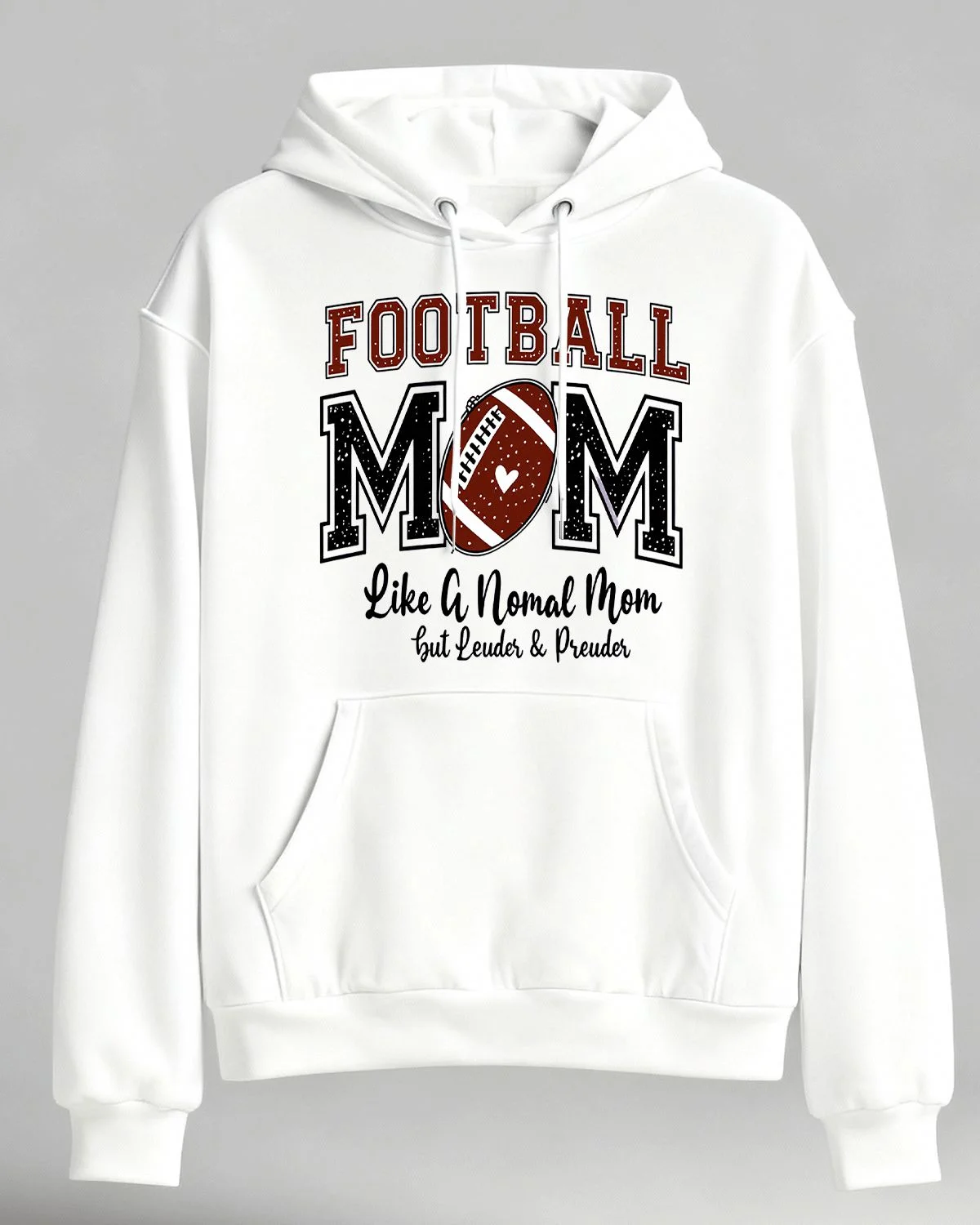 Football Mom Like A Normal Mom But Louder And Prouder Cozy Graphic Hoodie for Men and Women - Sporty Vintage, Long Sleeve, Soft Fabric, Comfortable Fit