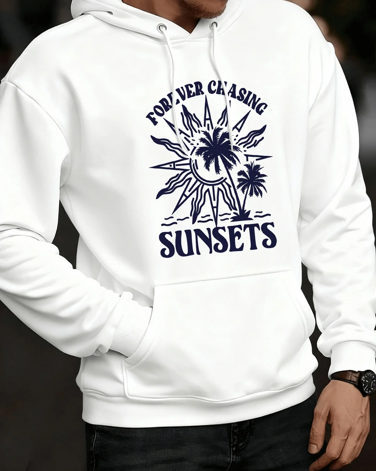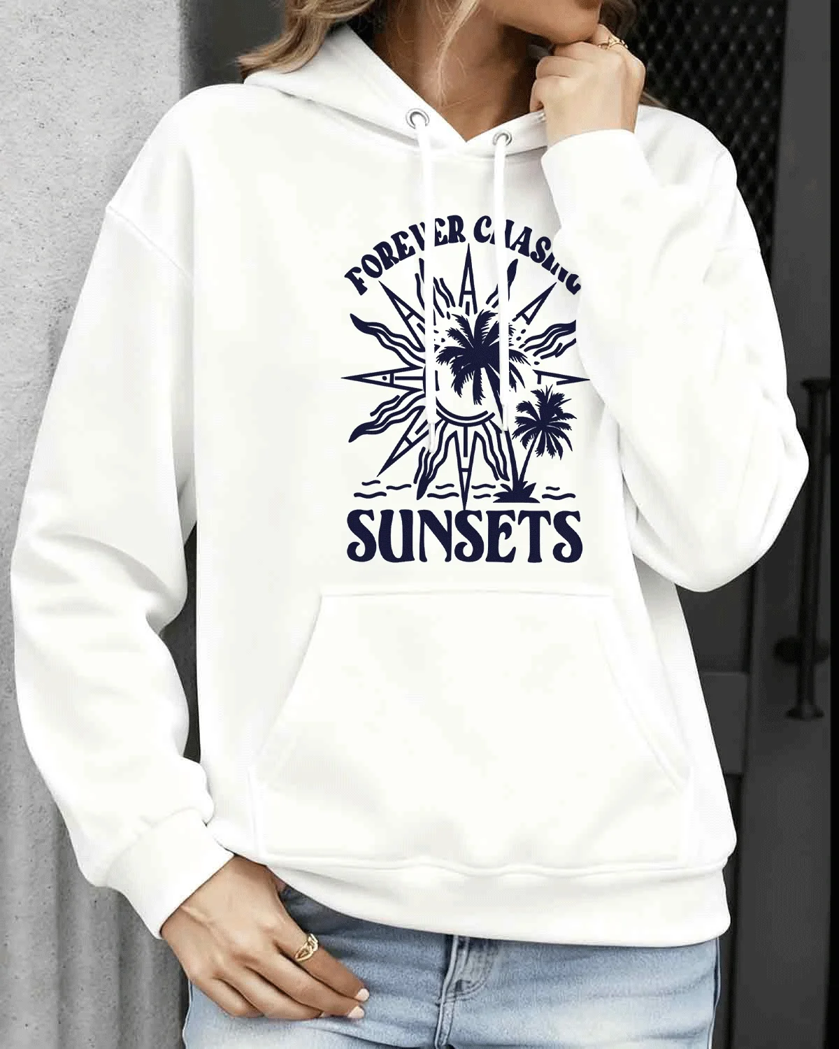 Forever Chasing Sunsets Cozy Cotton Graphic Hoodie-Casual Vintage,Long Sleeves,Soft Fabric,Comfortable Fit