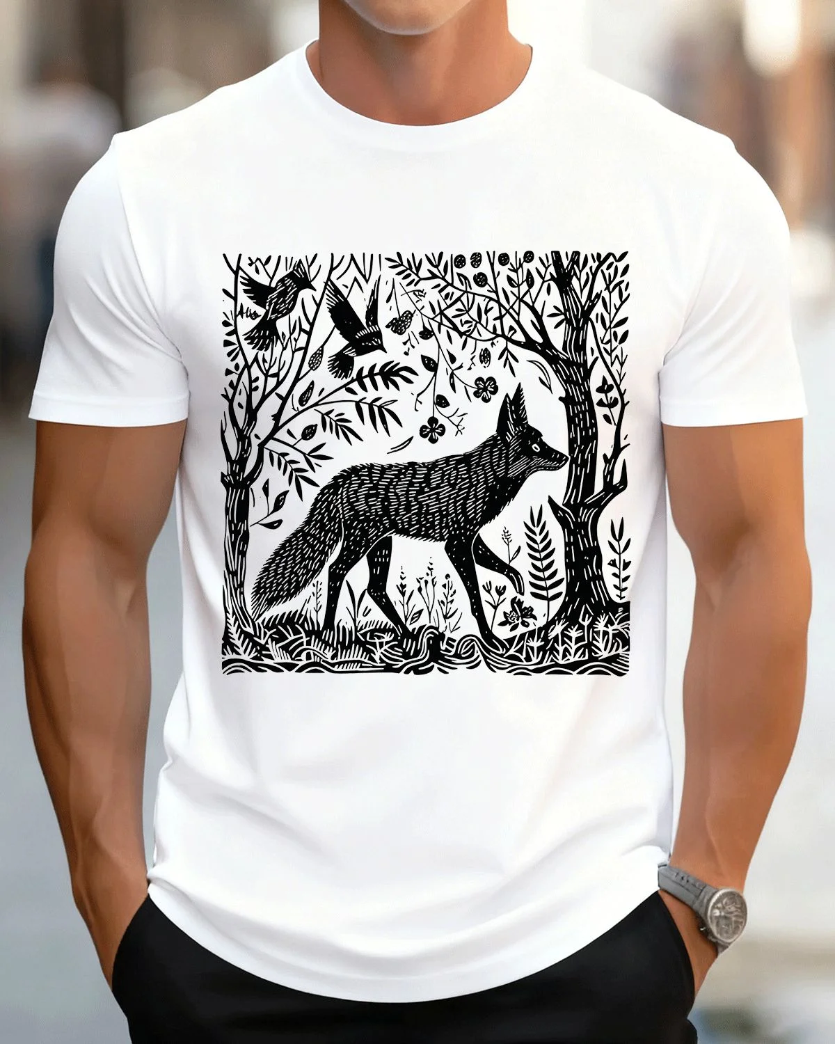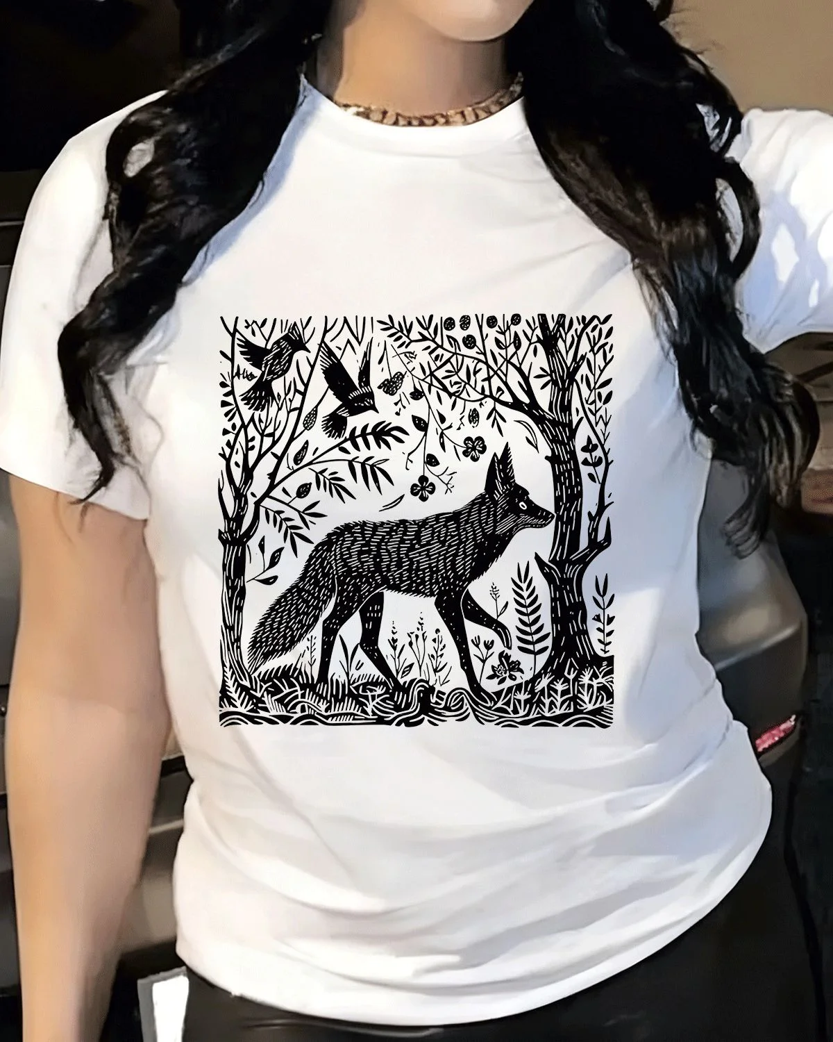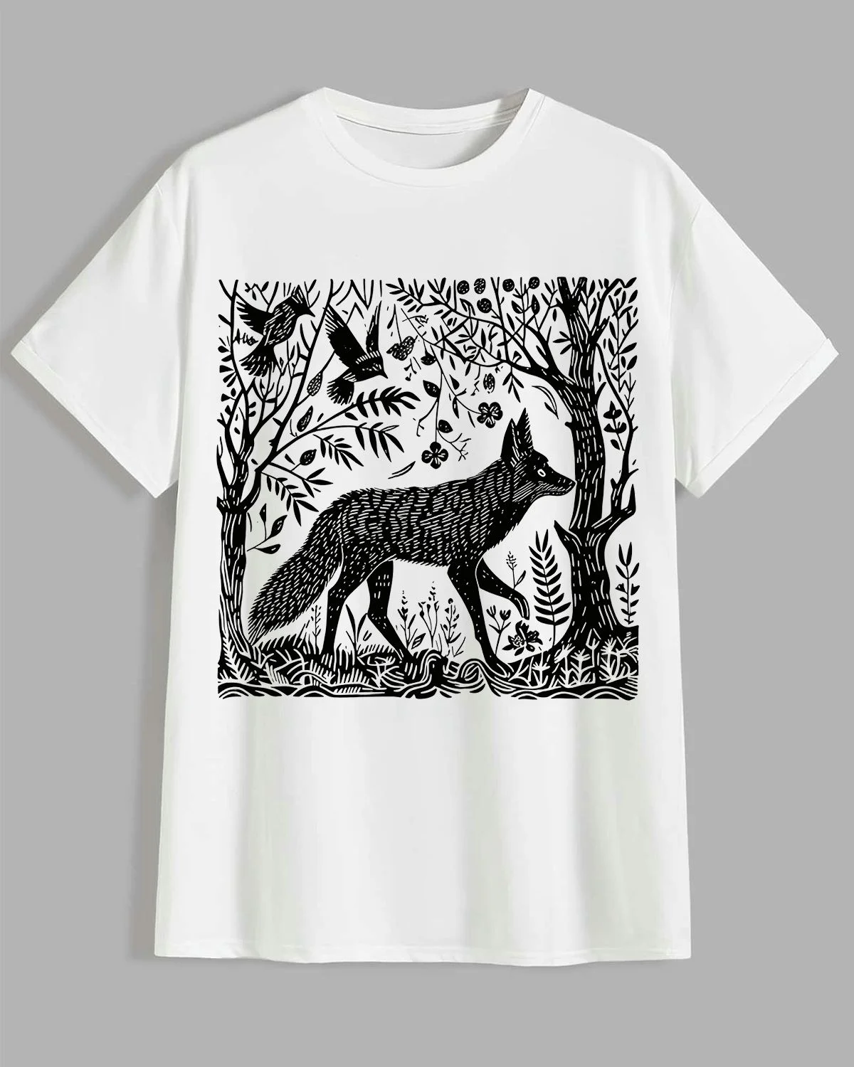 Christmas Chickens and Reindeer in Santa Hats Summer Cotton Graphic T Shirt - Funny Retro, Short Sleeve, Soft Fabric, Comfortable Fit