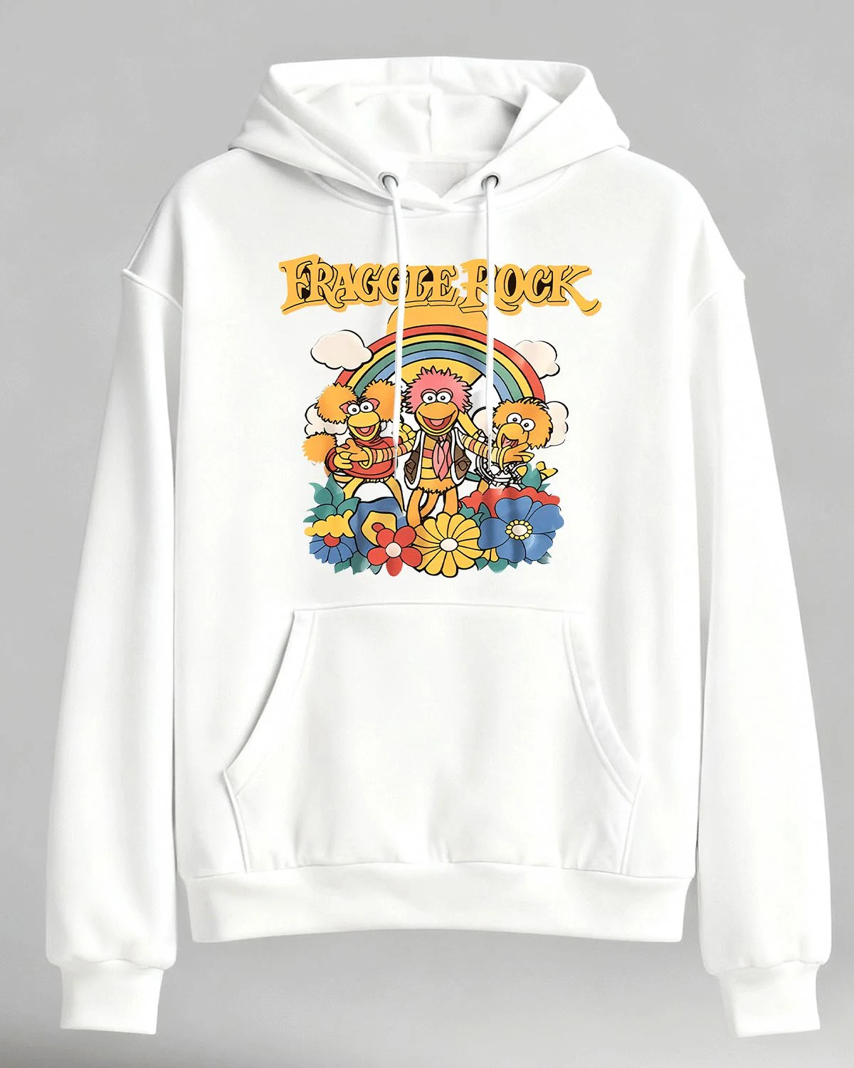 Fraggle Rock Rainbow and Flowers Cozy Graphic Hoodie for Men and Women - Vintage Retro, Long Sleeve, Soft Fabric, Comfortable Fit