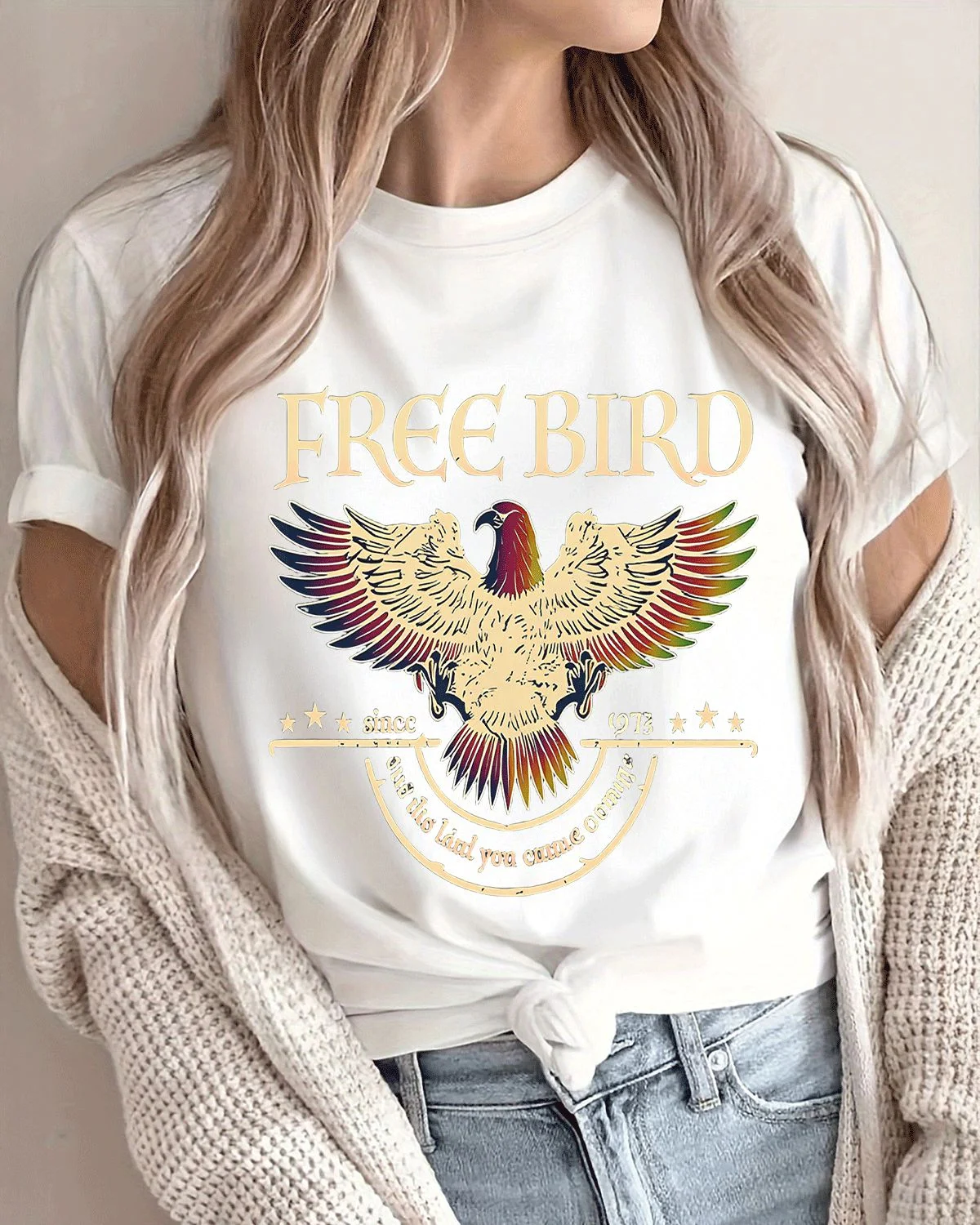 Free Bird Vintage Eagle Summer Cotton Graphic T Shirt - Retro Casual, Short Sleeve, Soft Fabric, Comfortable Fit