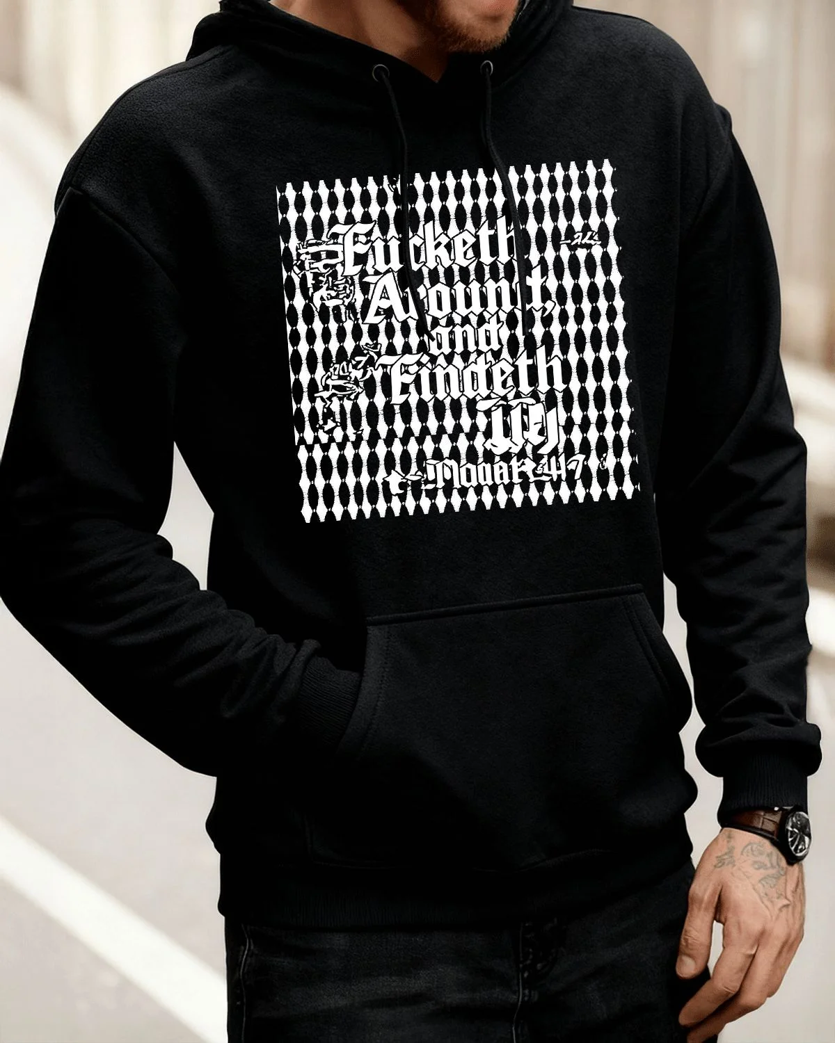 Fudgeth Around and Findeth Out Proverbs 4.7 Cozy Cotton Graphic Hoodie with Pocket-Casual Vintage,Long Sleeve,Soft Fabric,Comfortable Fit