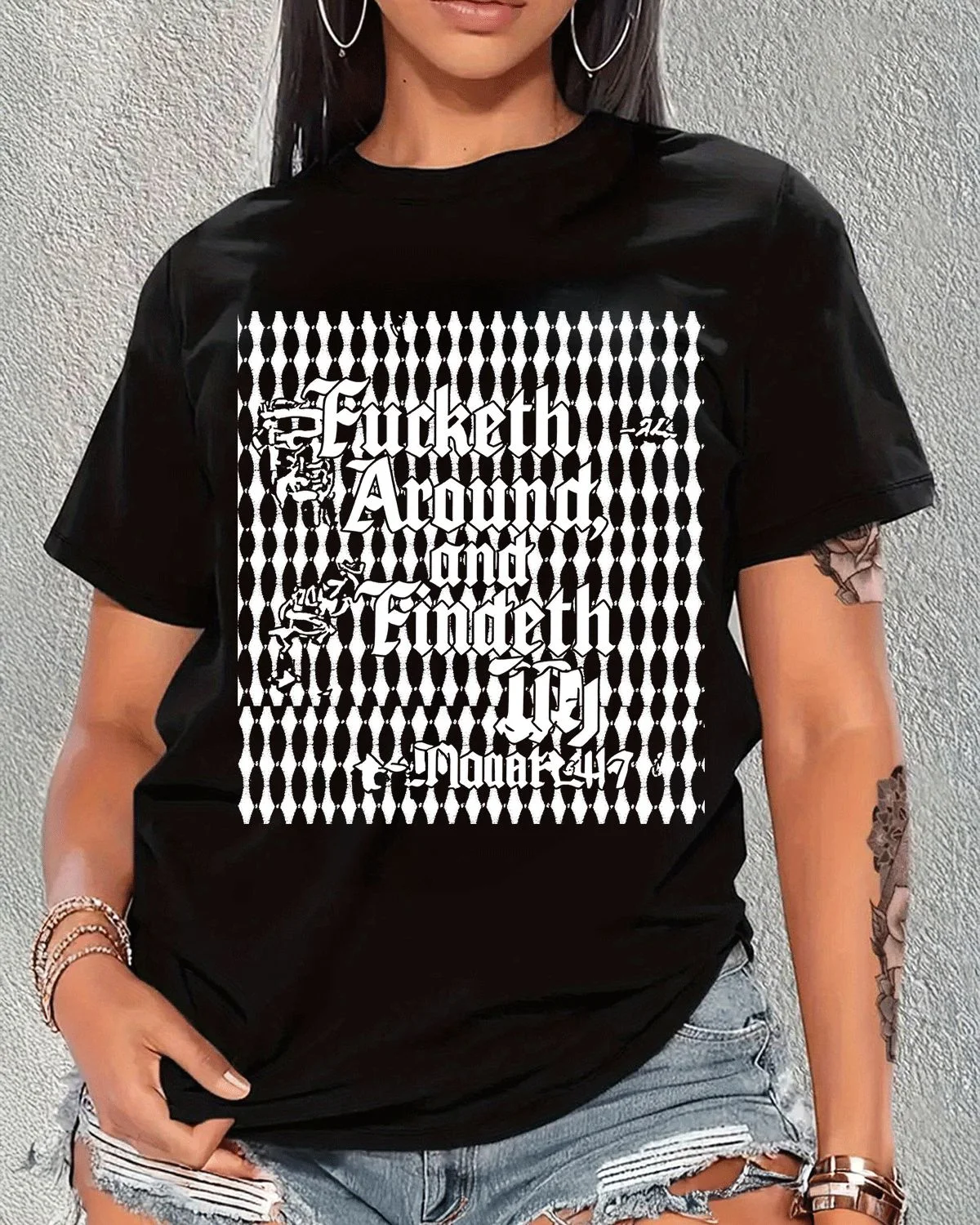 Fudgeth Around and Findeth Out Proverbs 4.7 Summer Cotton Graphic T Shirt - Casual Vintage,Short Sleeve,Soft Fabric,Comfortable Fit
