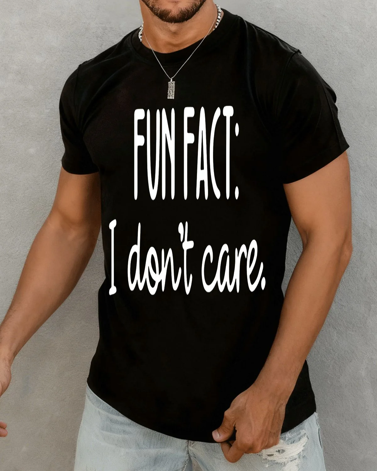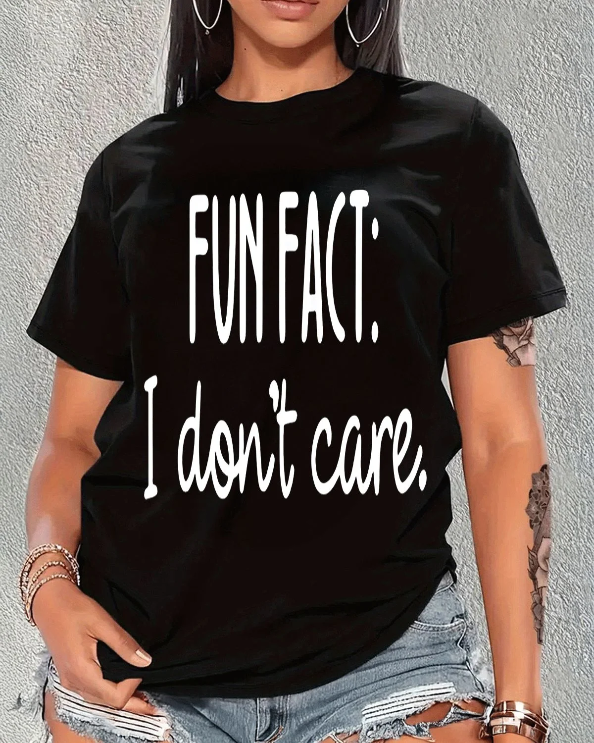 Fun Fact I Don't Care Summer Cotton Graphic T Shirt-Casual Funny,Short Sleeve,Soft Fabric,Comfortable Fit