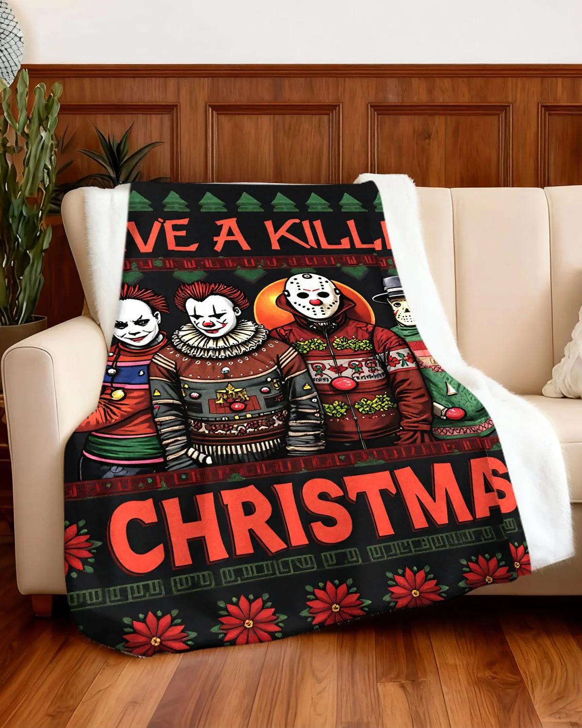 Funny Horror Christmas Holiday Gift Blanket-Cozy Graphic,Warm,Plush,Durable,For Couch,Living Room Use