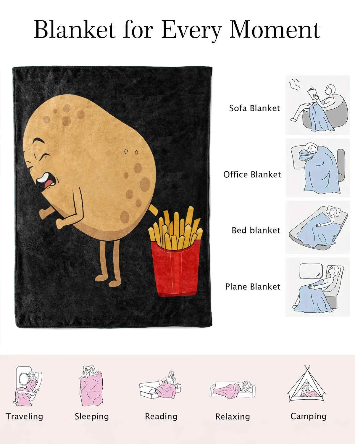 Funny Potato French Fry Humor Gift Blanket-Cozy Cute,Plush,Warm,Lightweight,For Couch,Living Room Use