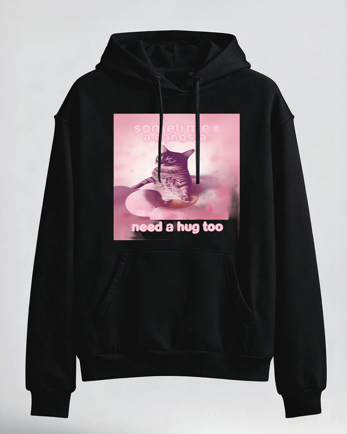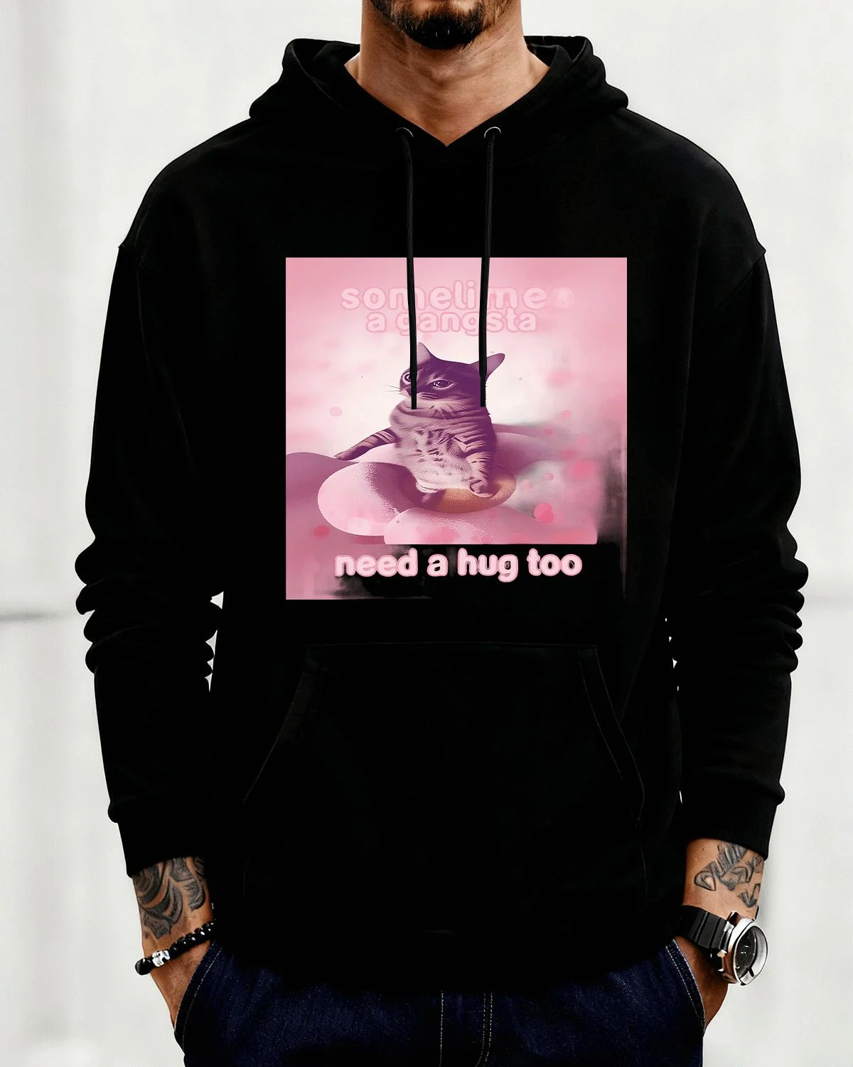 Gangsta Cat Needs A Hug Cozy Cotton Graphic Hoodie with Pocket-Casual Funny,Long Sleeve,Soft Fabric,Comfortable Fit