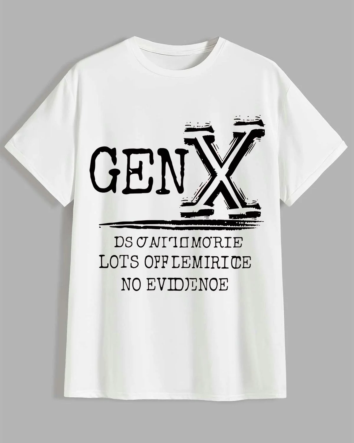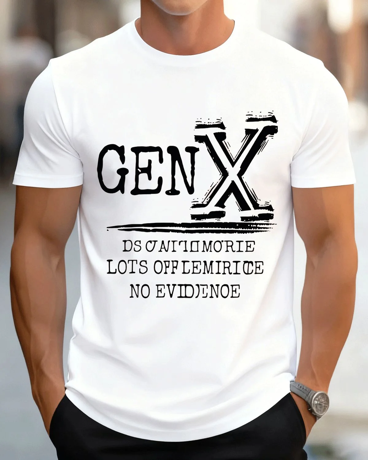 Gen X No Evidence Summer Cotton Graphic T Shirt - Vintage Retro, Short Sleeve, Soft Fabric, Comfortable Fit