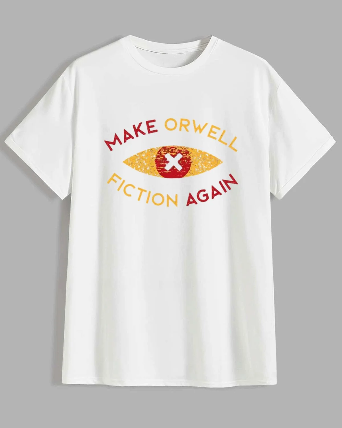 George Orwell Fiction Warning Eye Summer Cotton Graphic T Shirt - Vintage Artistic,Short Sleeve,Soft Fabric,Comfortable Fit
