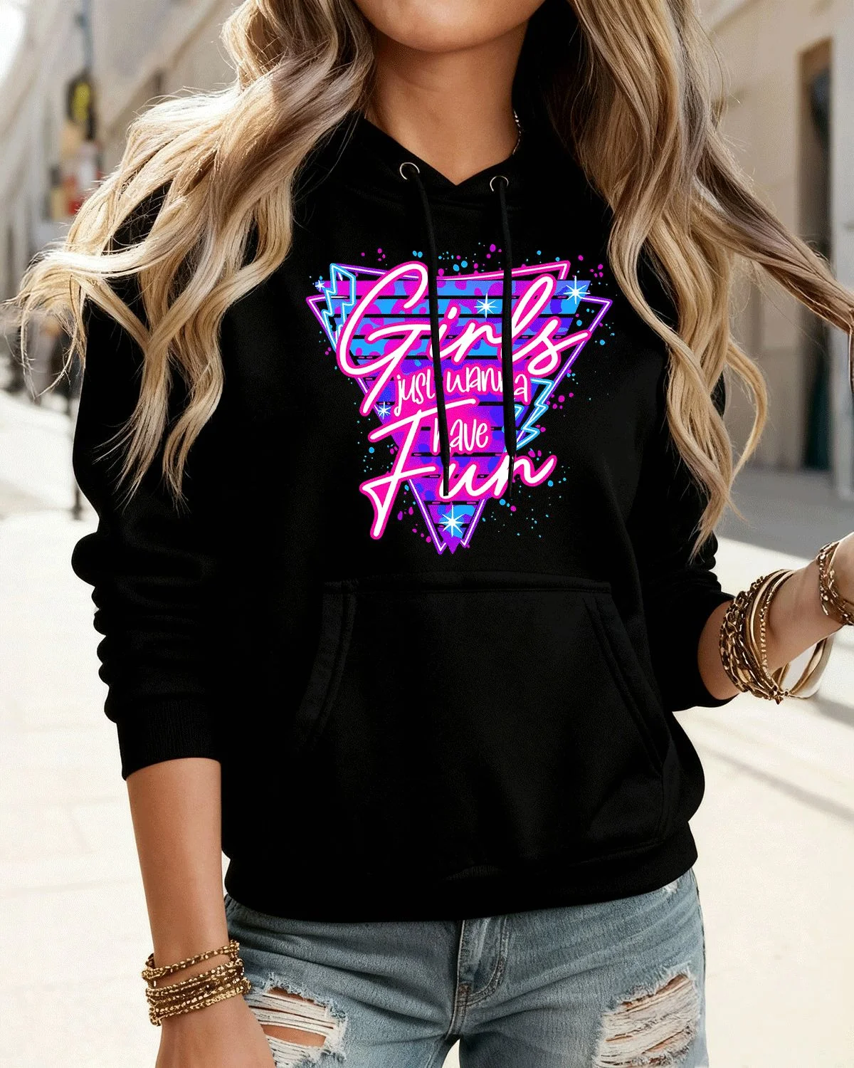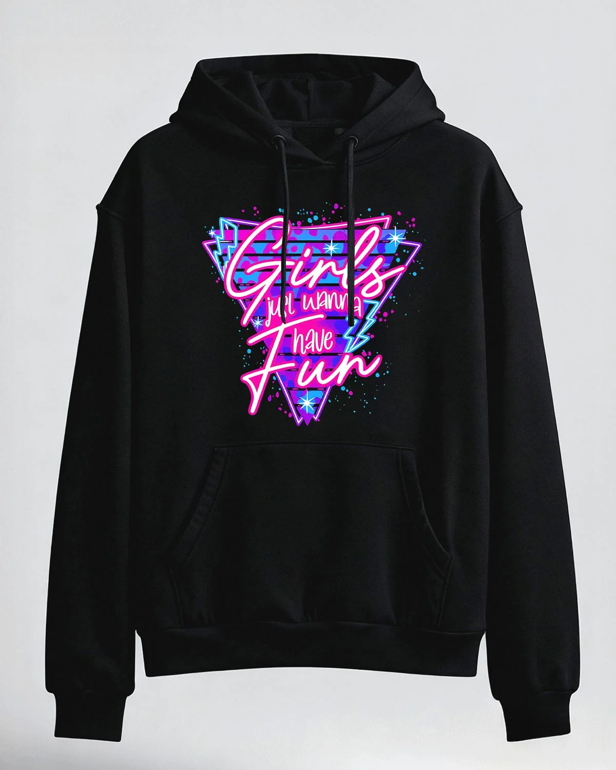 Girls Just Wanna Have Fun Cozy Graphic Hoodie for Men and Women - Retro Vintage, Long Sleeve, Soft Fabric, Comfortable Fit
