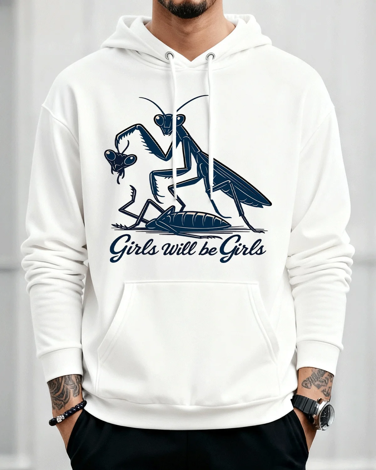 Girls Will Be Girls Praying Mantis Cozy Cotton Graphic Hoodie-Casual Funny,Long Sleeves,Soft Fabric,Comfortable Fit